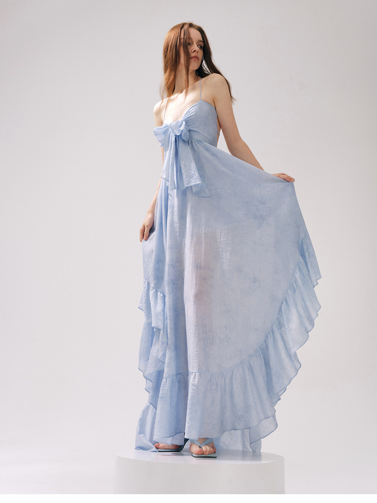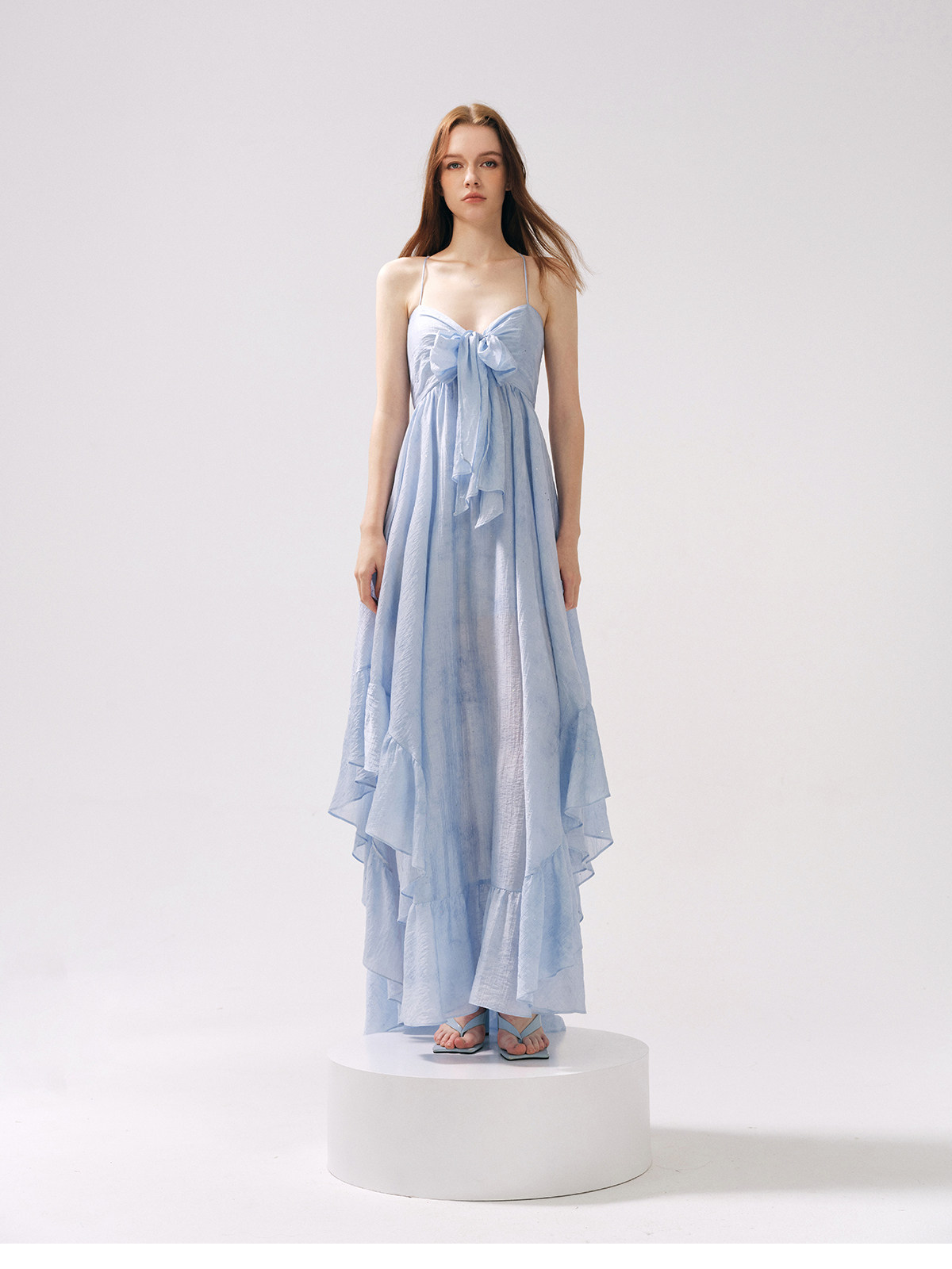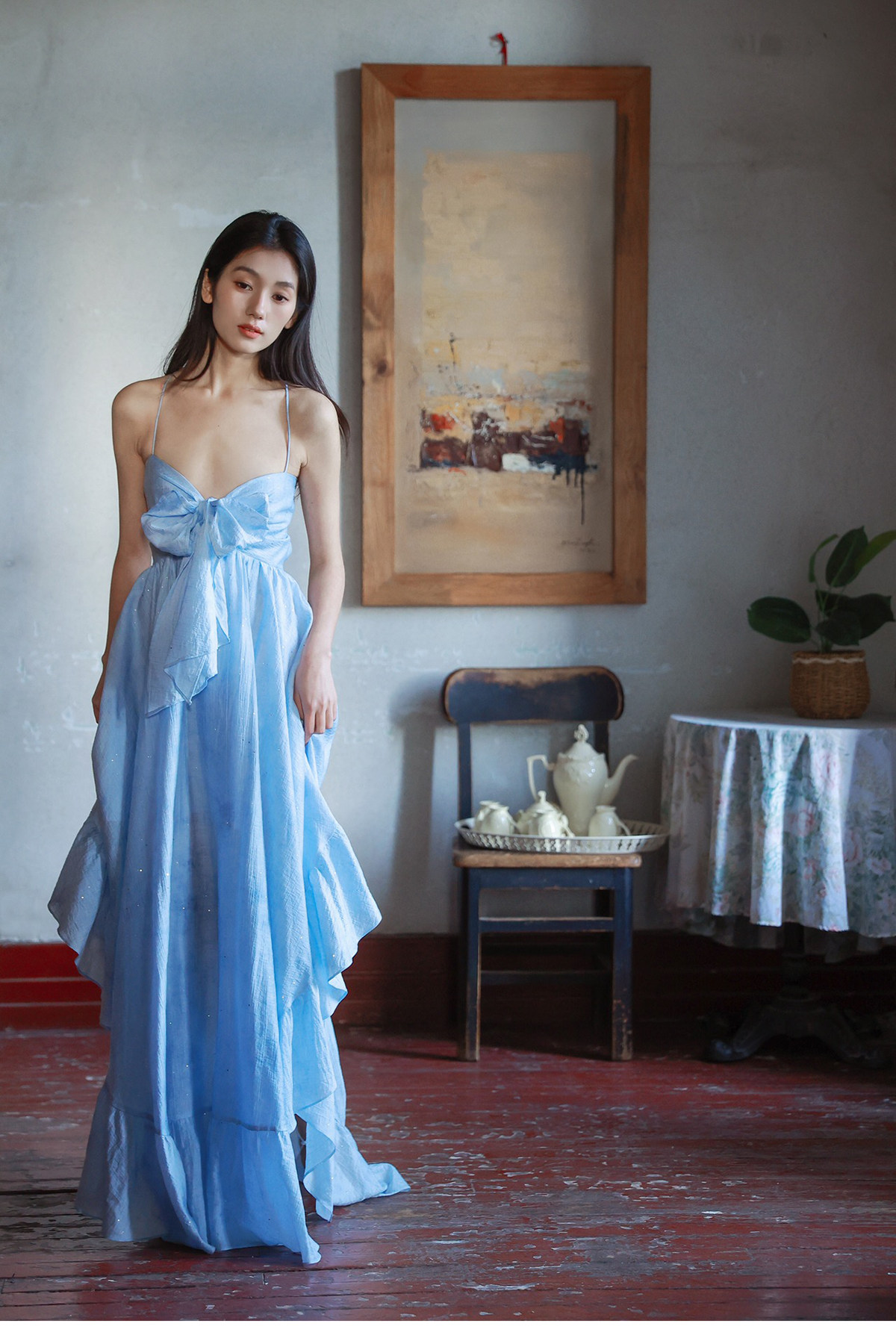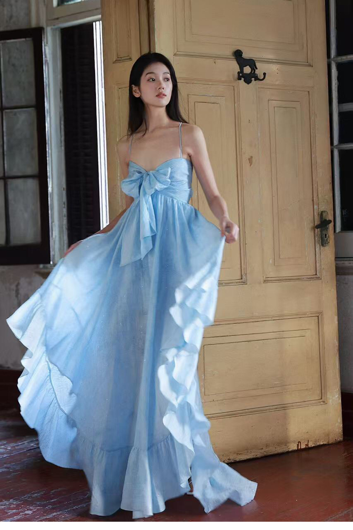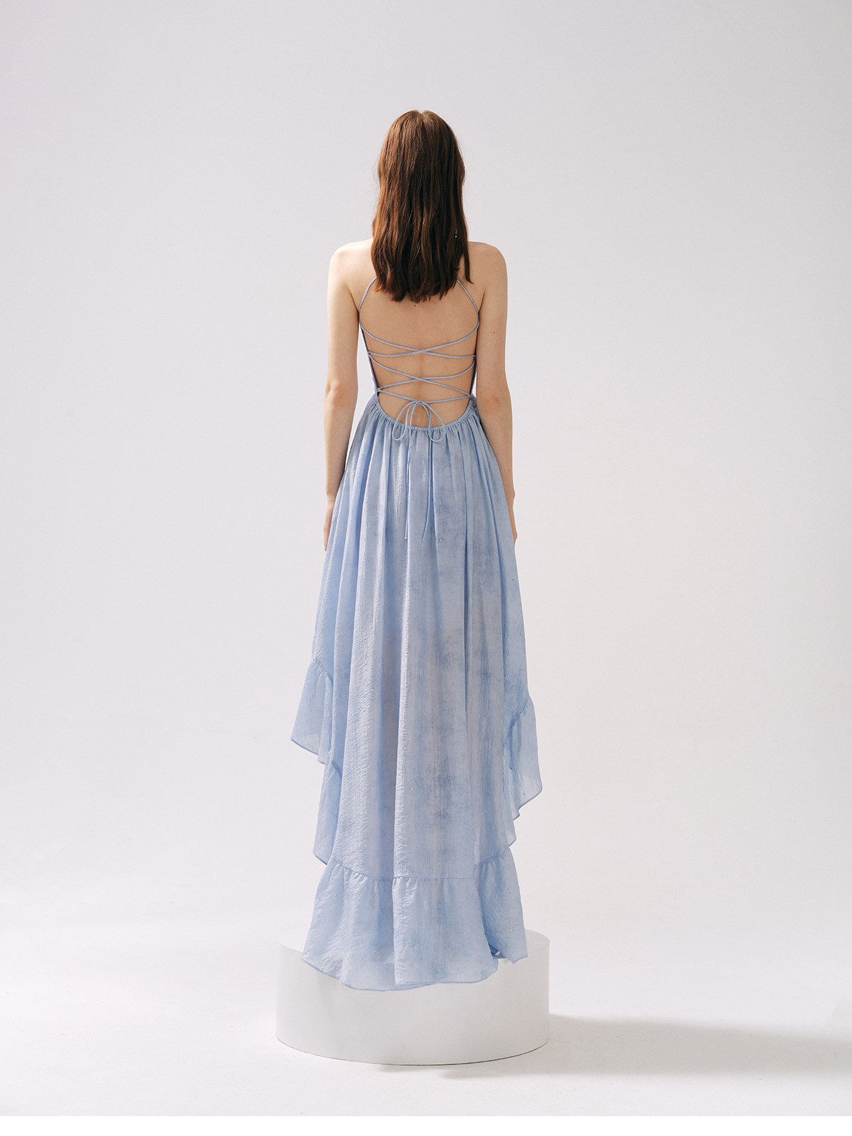 Moodxmiura платье с синим рюшатым галстуком -бабочкой без спинки 25 весенний новый магазин покупателей MISSL