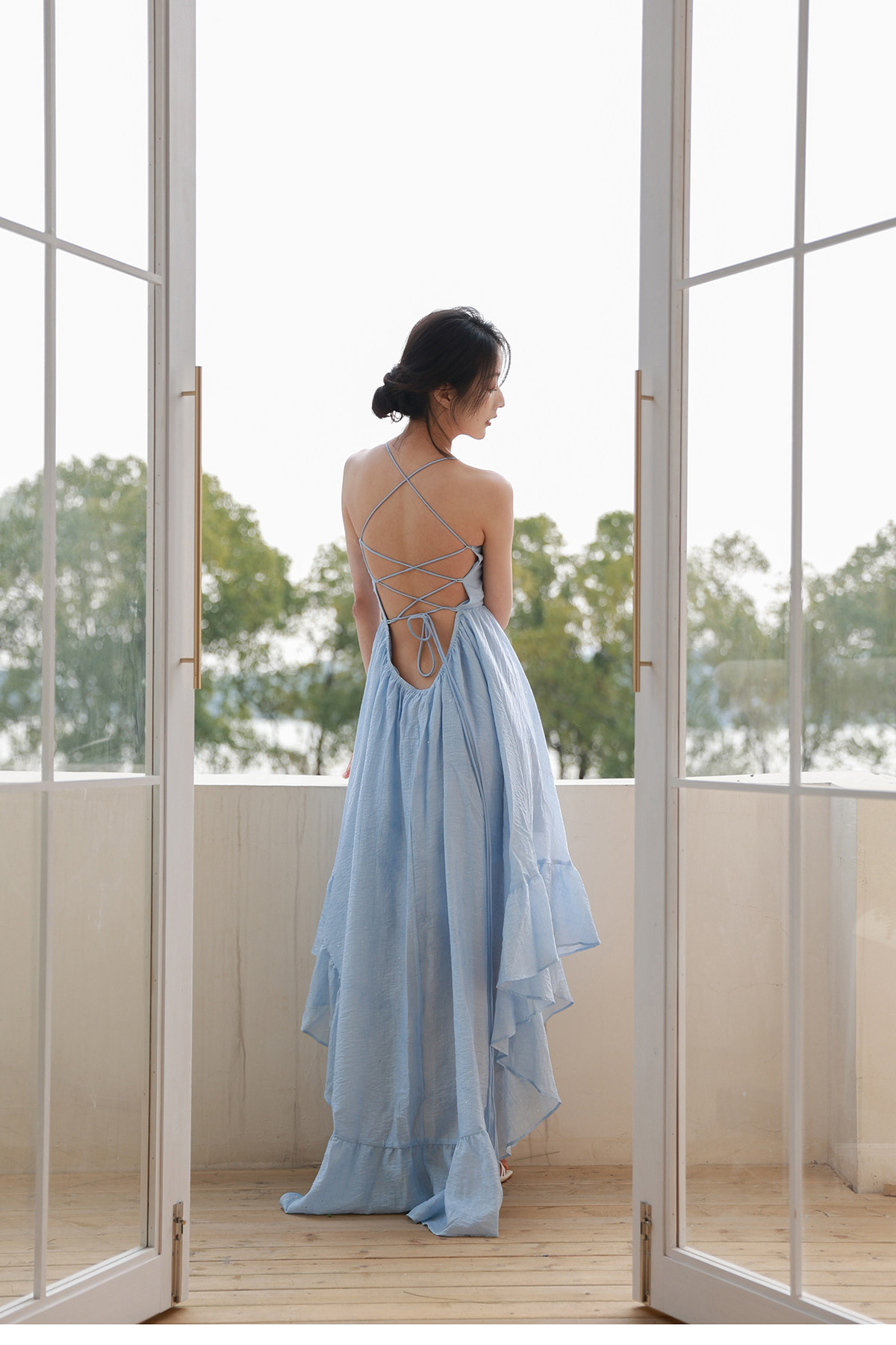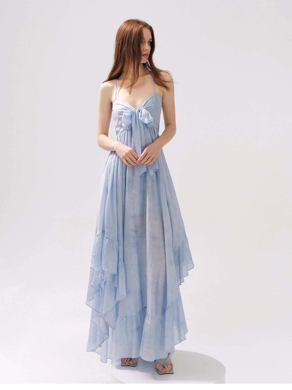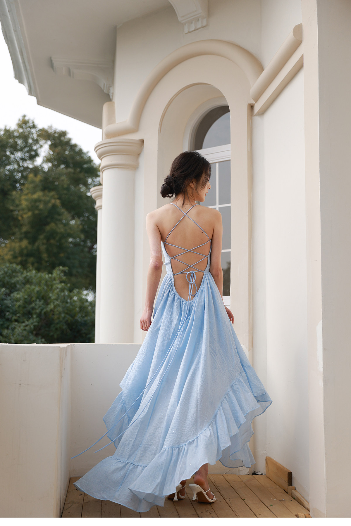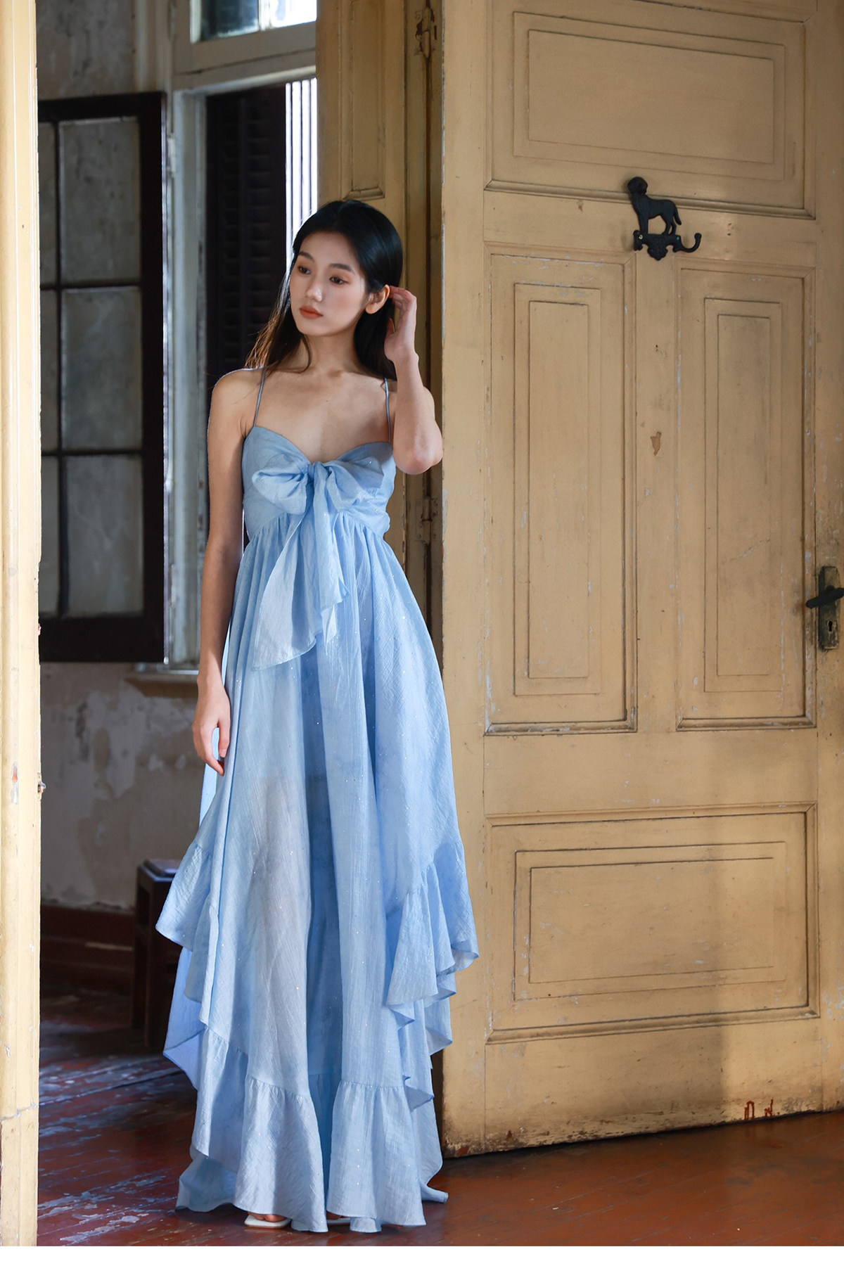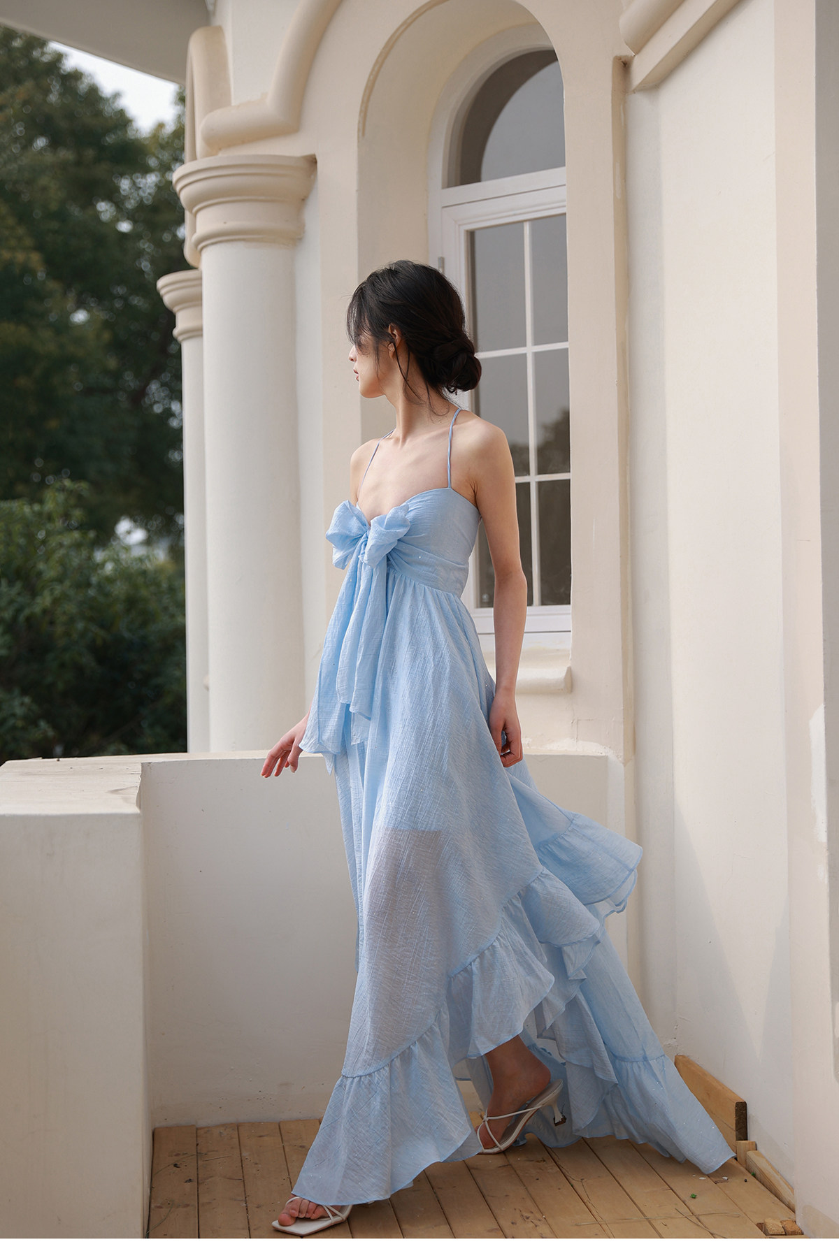 Moodxmiura платье с синим рюшатым галстуком -бабочкой без спинки 25 весенний новый магазин покупателей MISSL