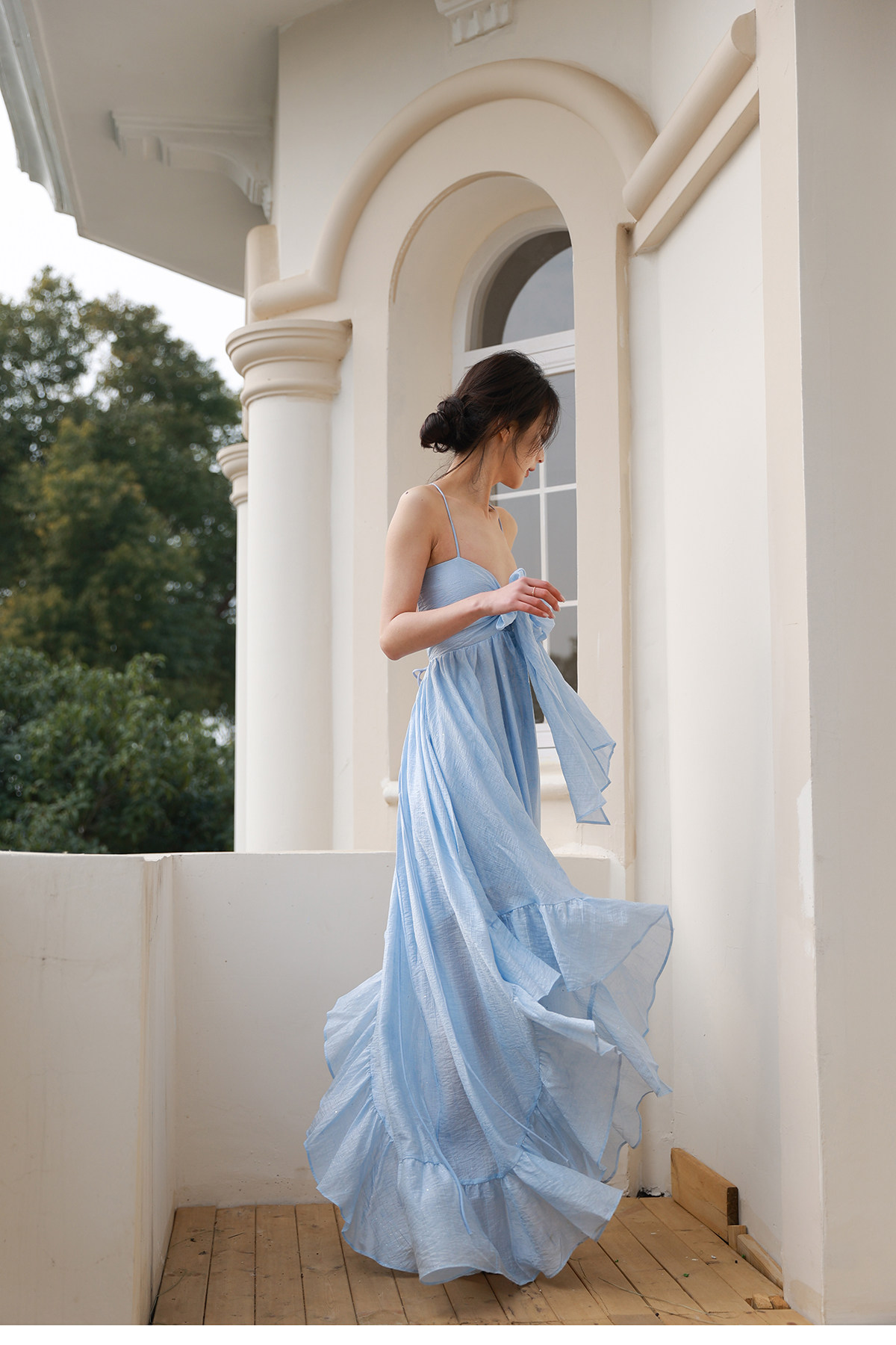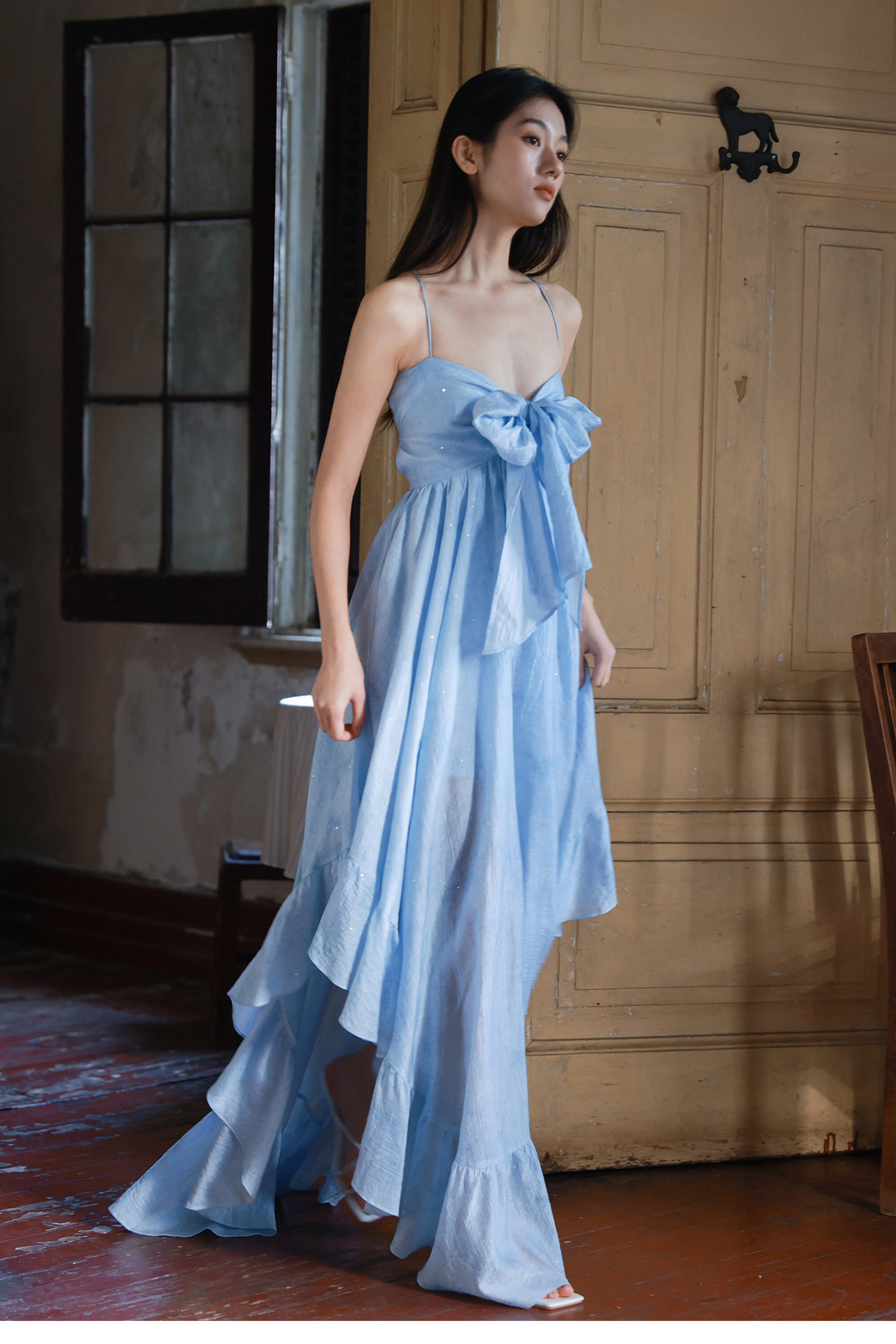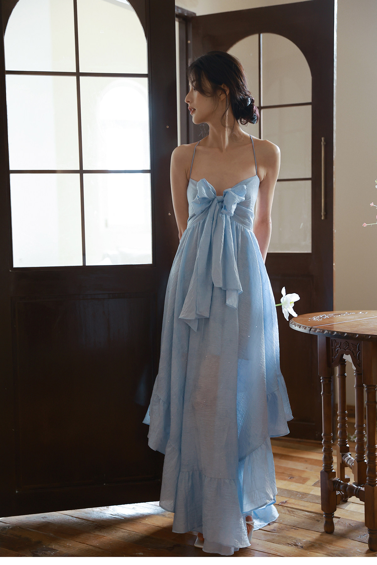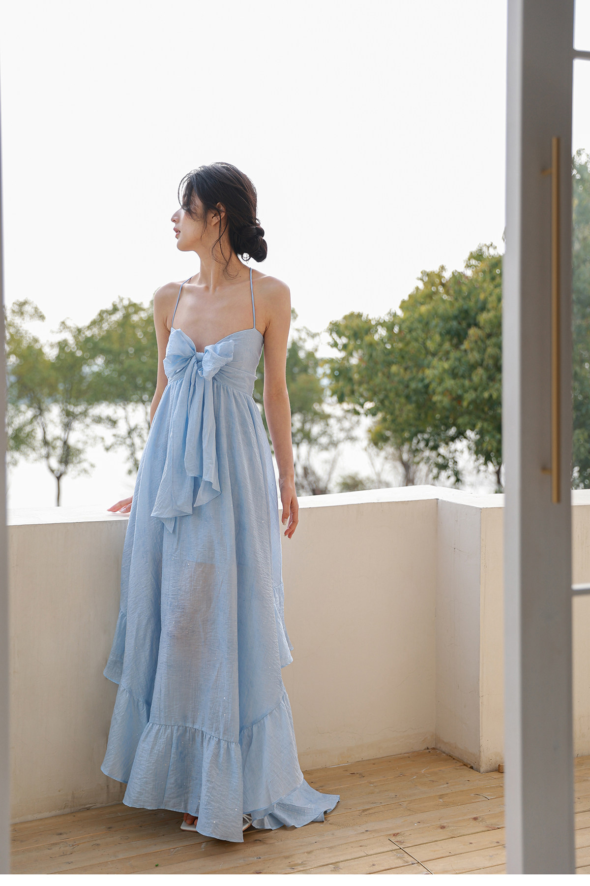 Moodxmiura платье с синим рюшатым галстуком -бабочкой без спинки 25 весенний новый магазин покупателей MISSL
