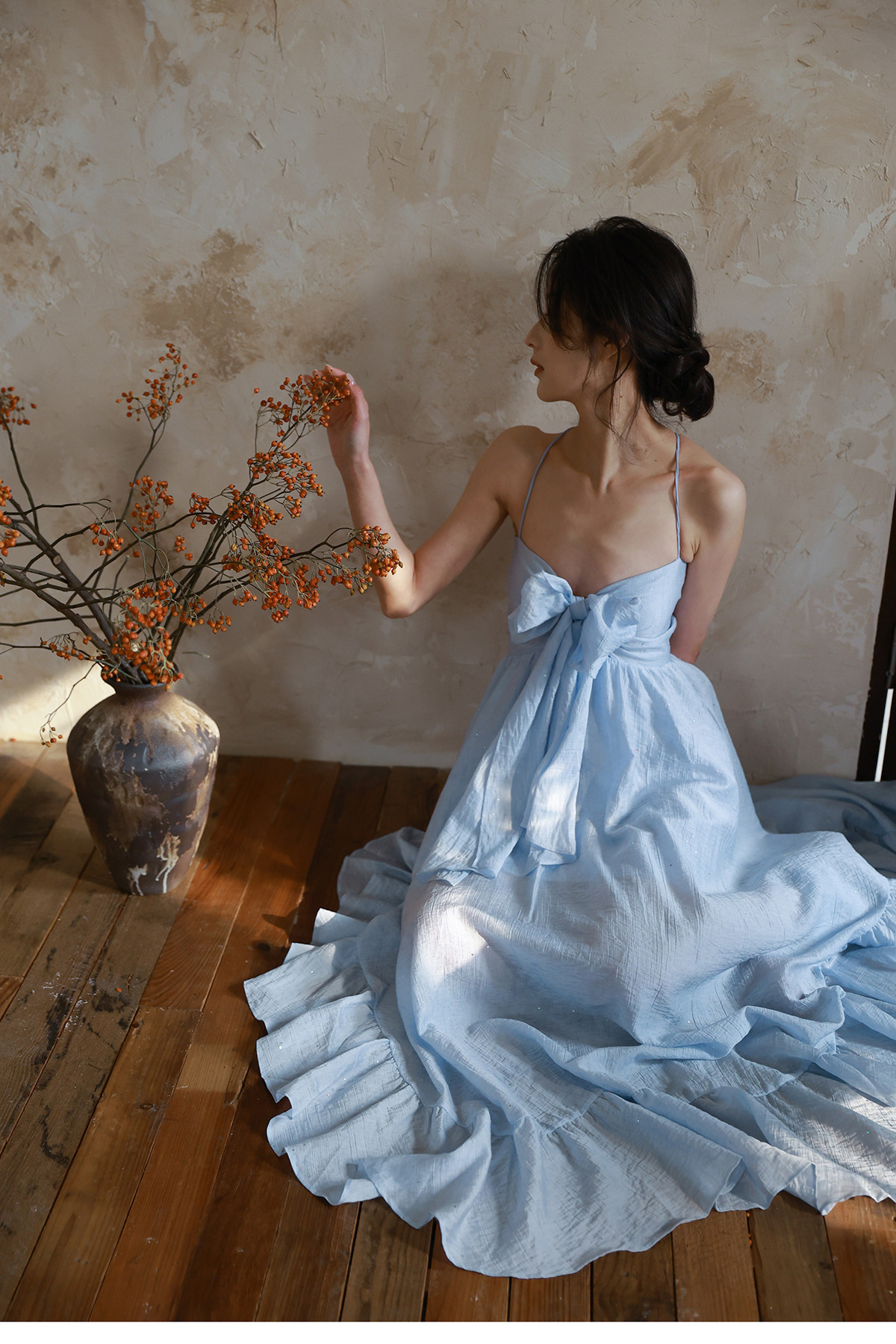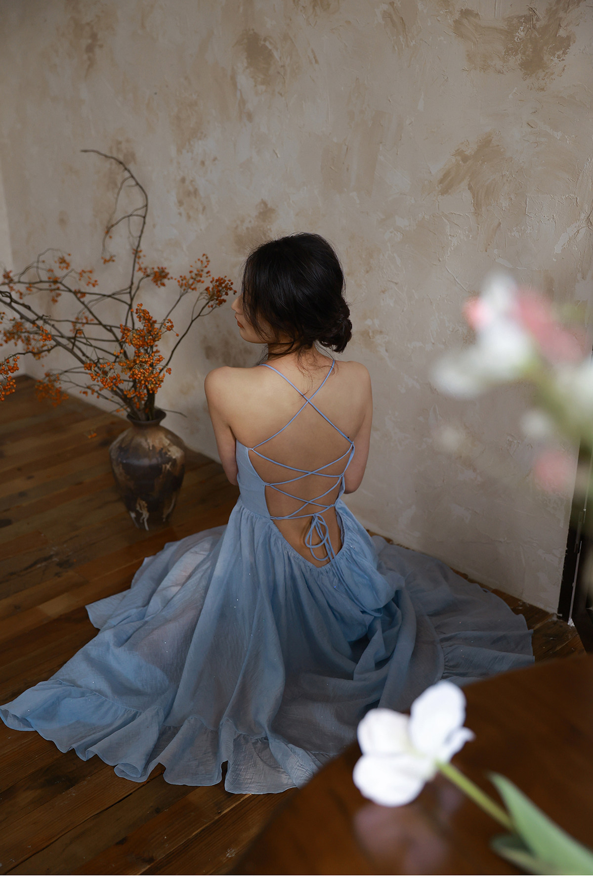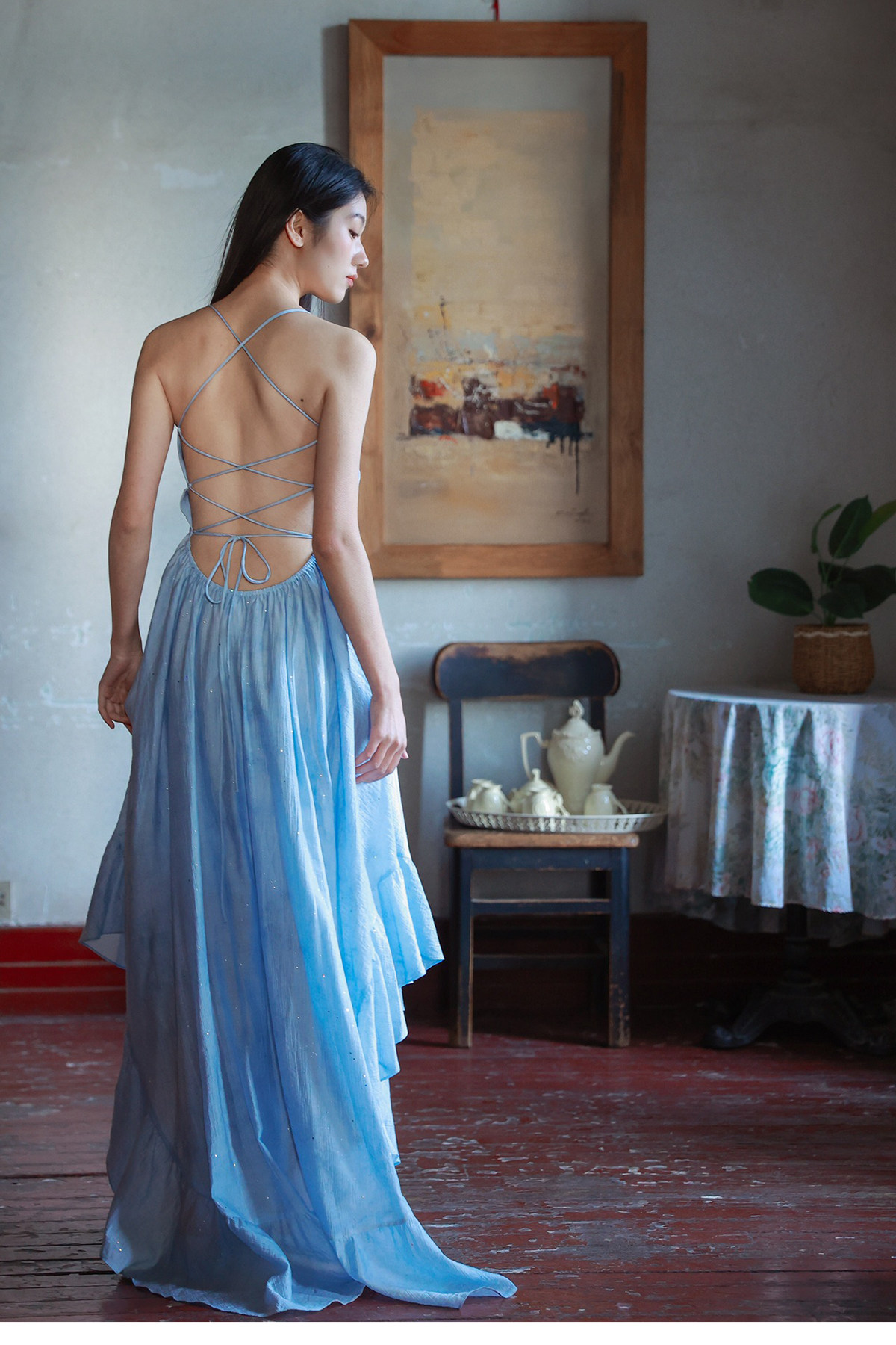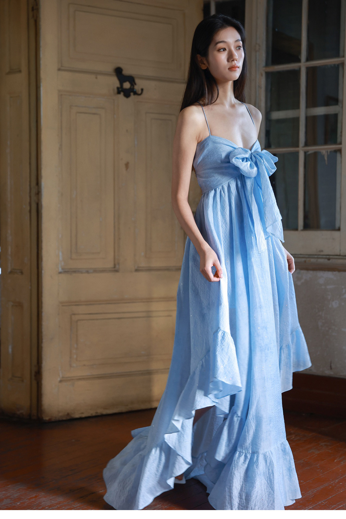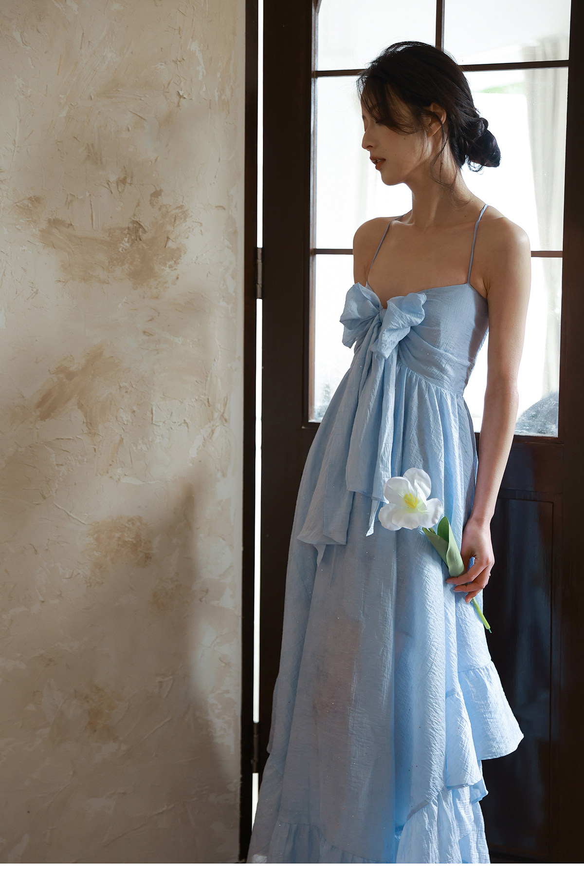 Moodxmiura платье с синим рюшатым галстуком -бабочкой без спинки 25 весенний новый магазин покупателей MISSL