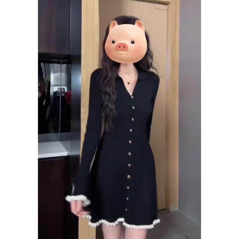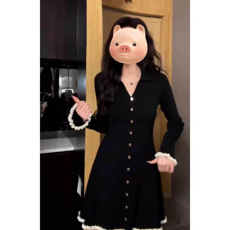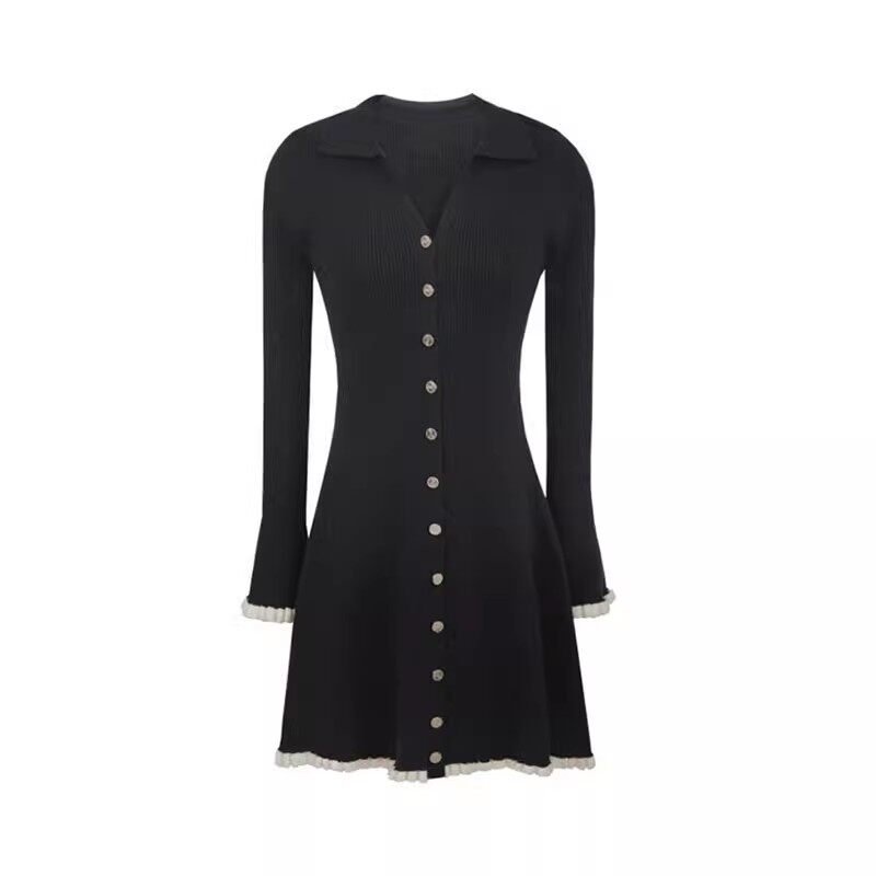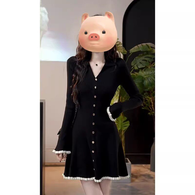 Трикотажное весеннее трикотажное платье, корсет, шерстяное платье, французский стиль, V-образный вырез, в стиле Шанель, А-силуэт
