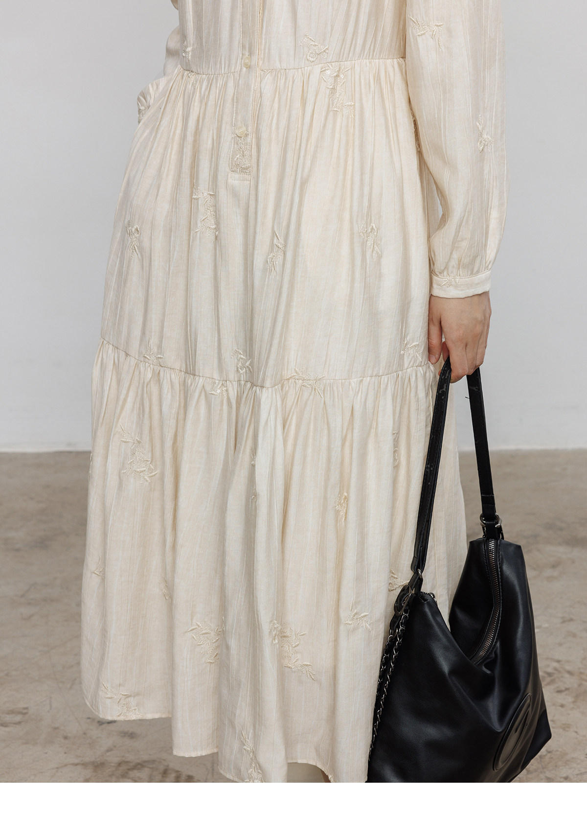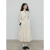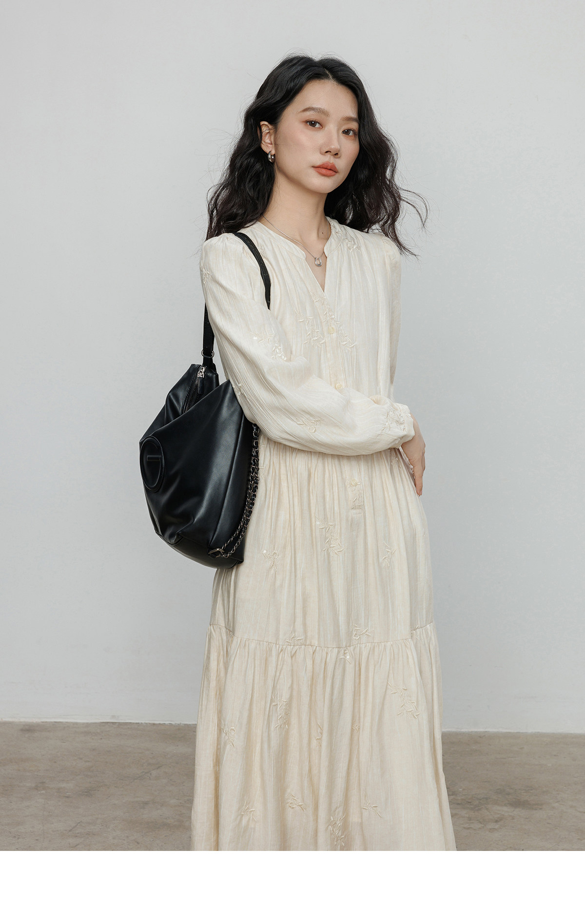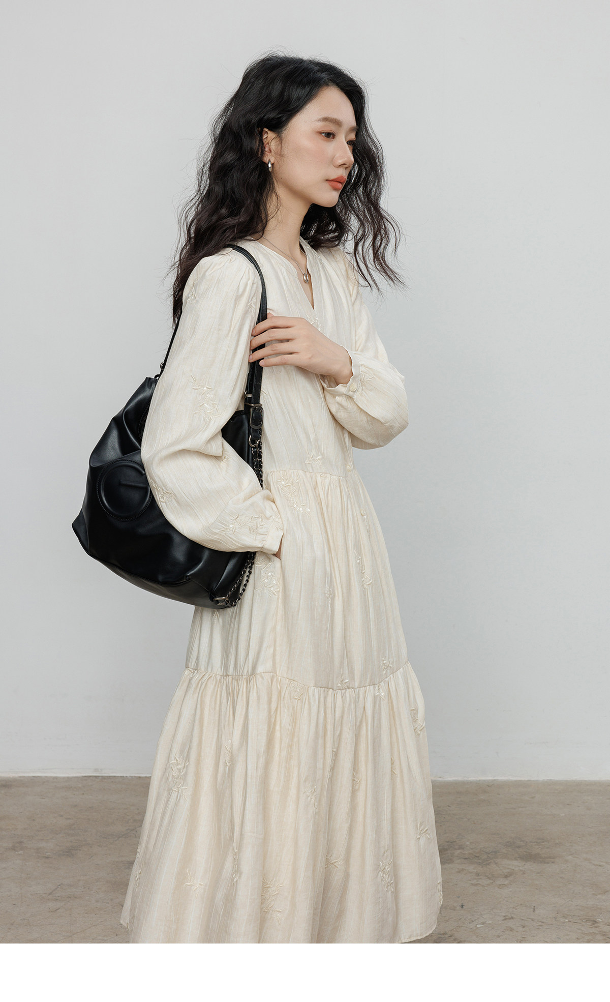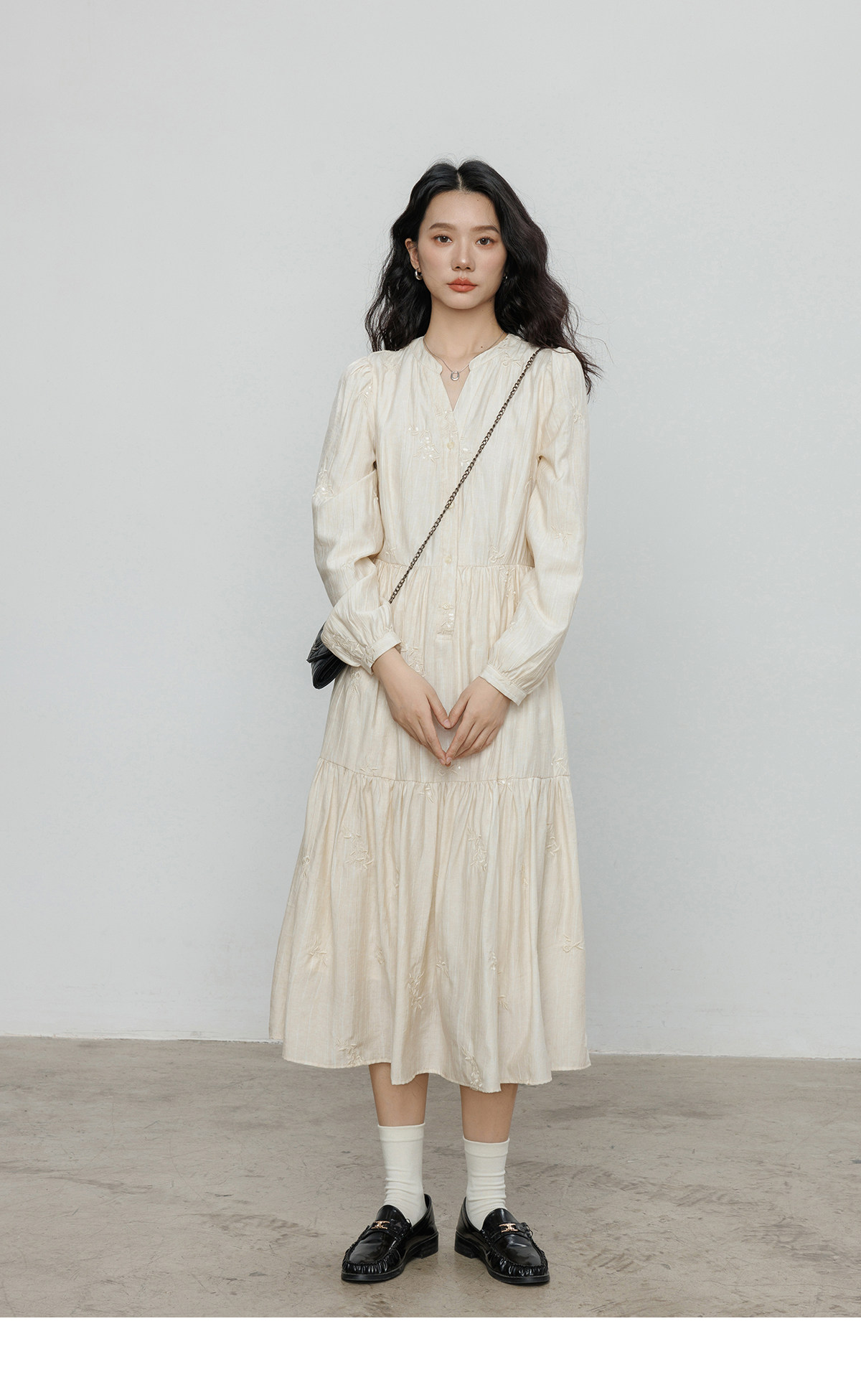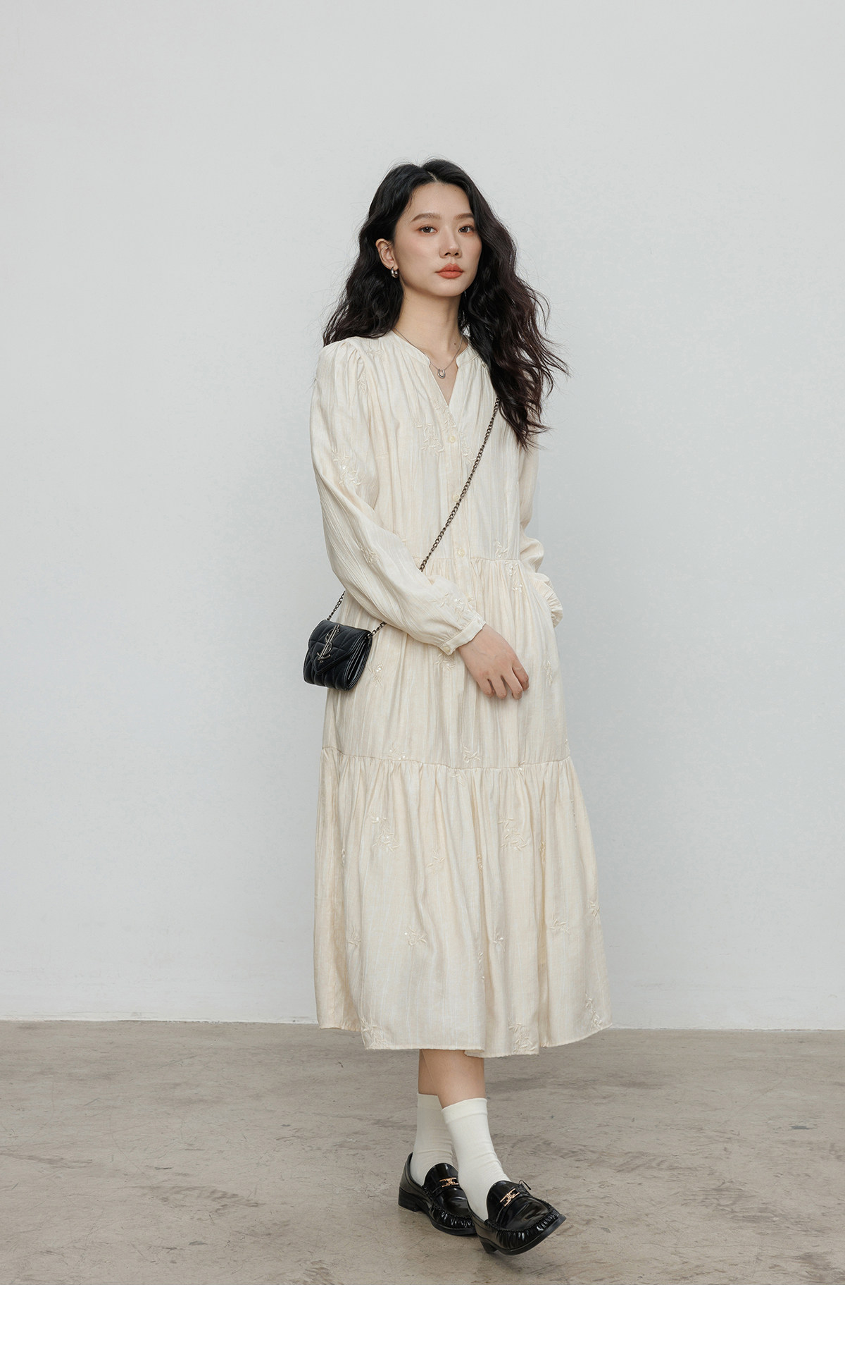 Лонгслив, дизайнерское платье, длинная юбка, V-образный вырез, с вышивкой, французский стиль, тренд сезона, А-силуэт