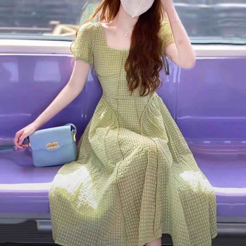 Осеннее летнее платье, длинная юбка, французский стиль, премиум класс, яркий броский стиль, короткий рукав, с рукавом