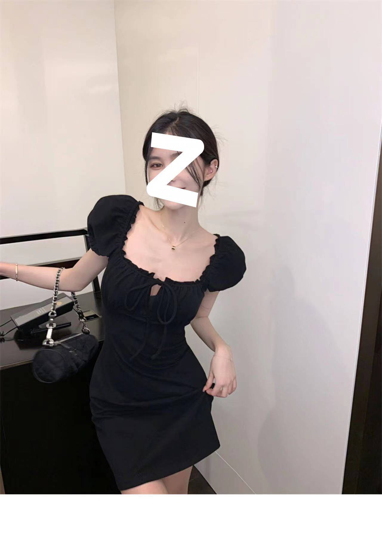 Черное платье, корсет, приталенная мини-юбка, юбка, французский стиль, квадратный вырез, с акцентом на бедрах
