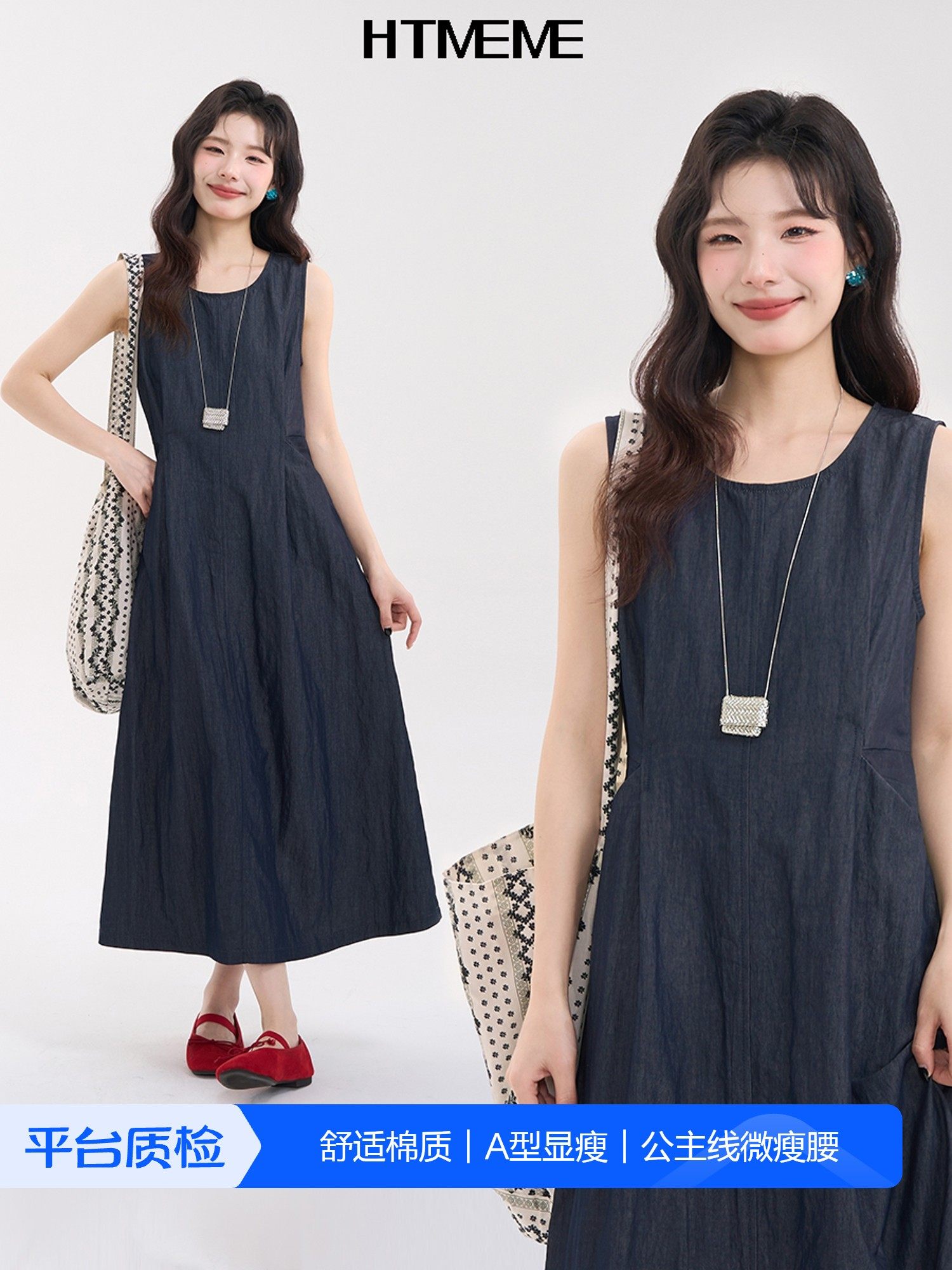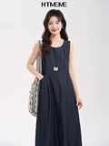 花田橱窗 Htmeme Lotte Rose ~ древнее покрытое платье теннисного жилета Женское летнее темперамент платье без рукавов