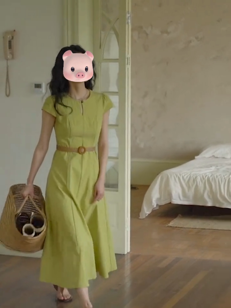 Ретро приталенный корсет, платье, летняя небольшая дизайнерская длинная юбка, французский ретро стиль, короткий рукав