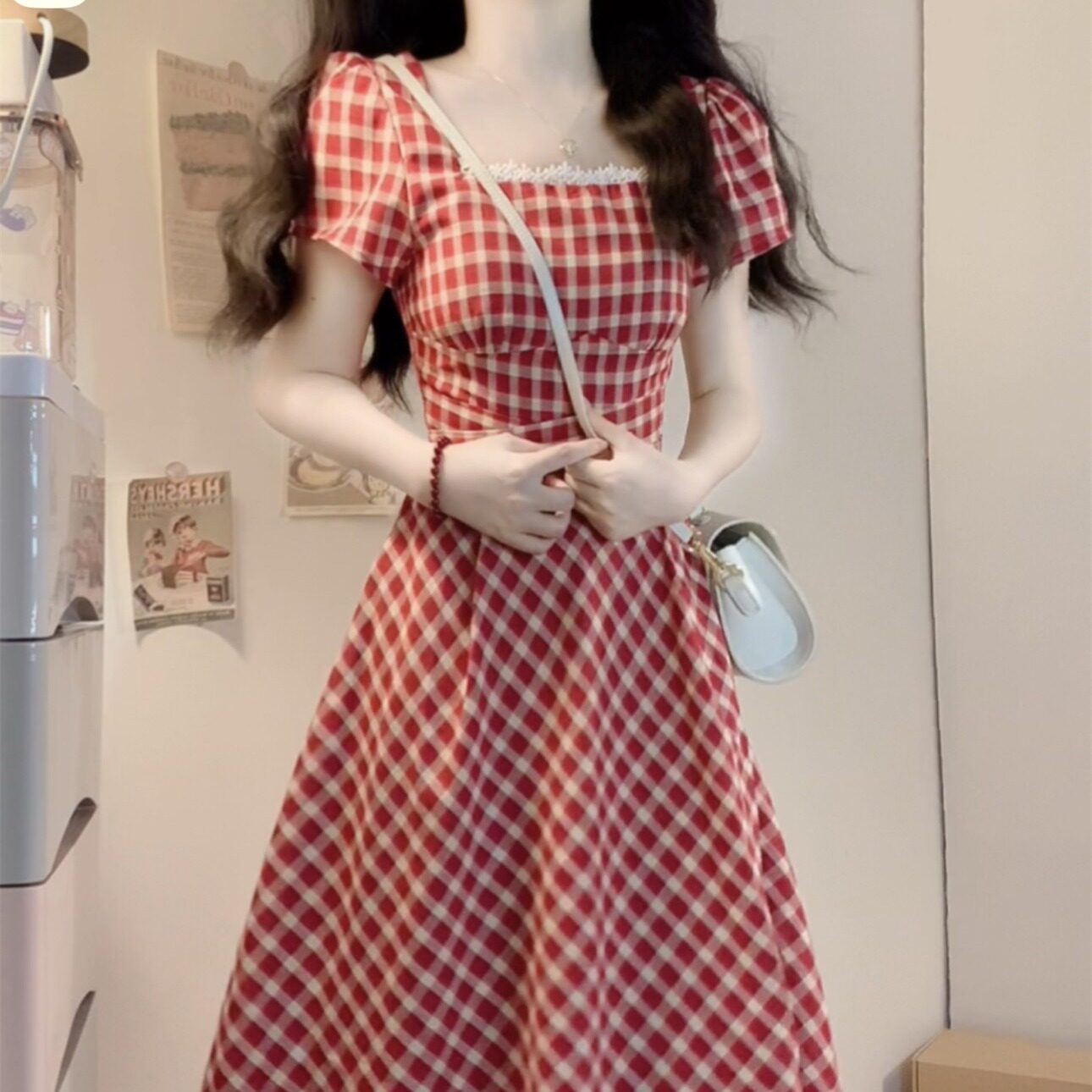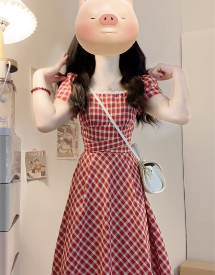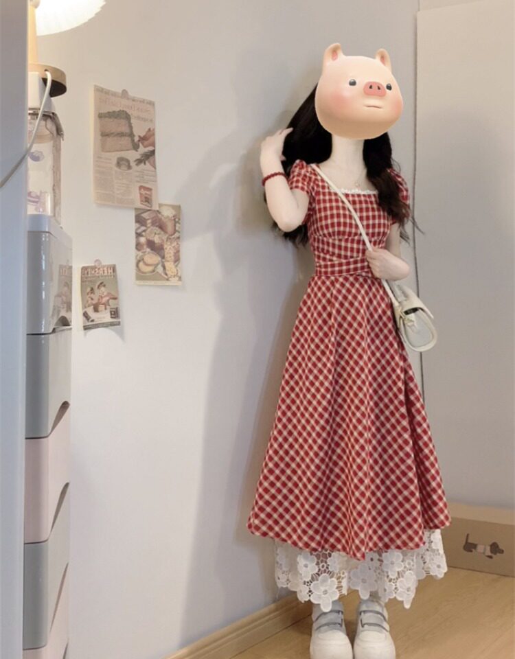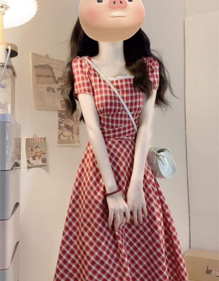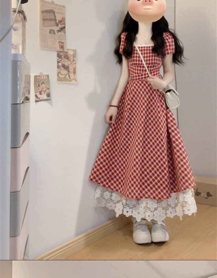 Милое платье, длинная юбка, большой размер, французский стиль, А-силуэт