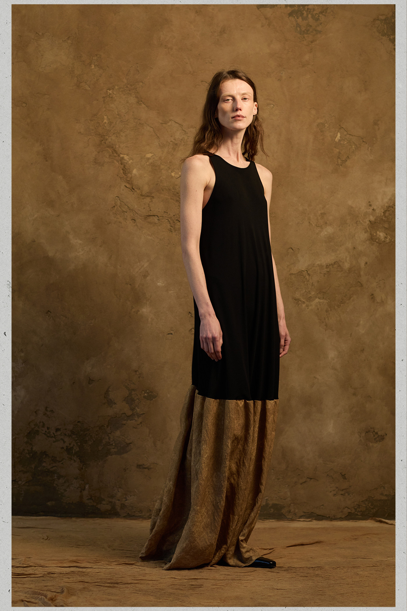 Miura Design 2025SS натуральный глиняный рукавиц Специальная окрашенная шелковая сплайдальная вязаная длинная юбка