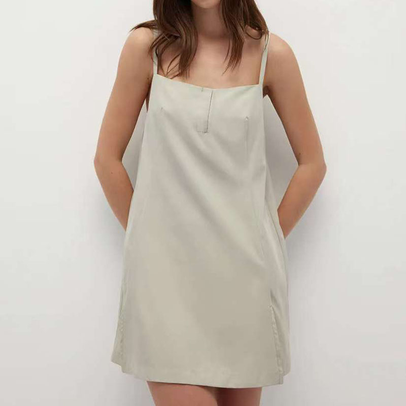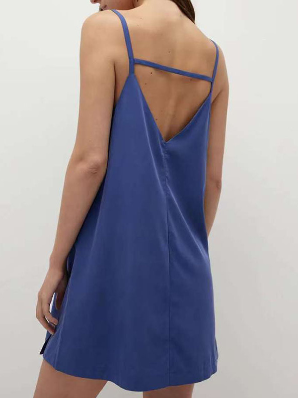 Летняя ткань, шелковистое платье-комбинация, матовые бретели, комбинезон, с открытой спиной