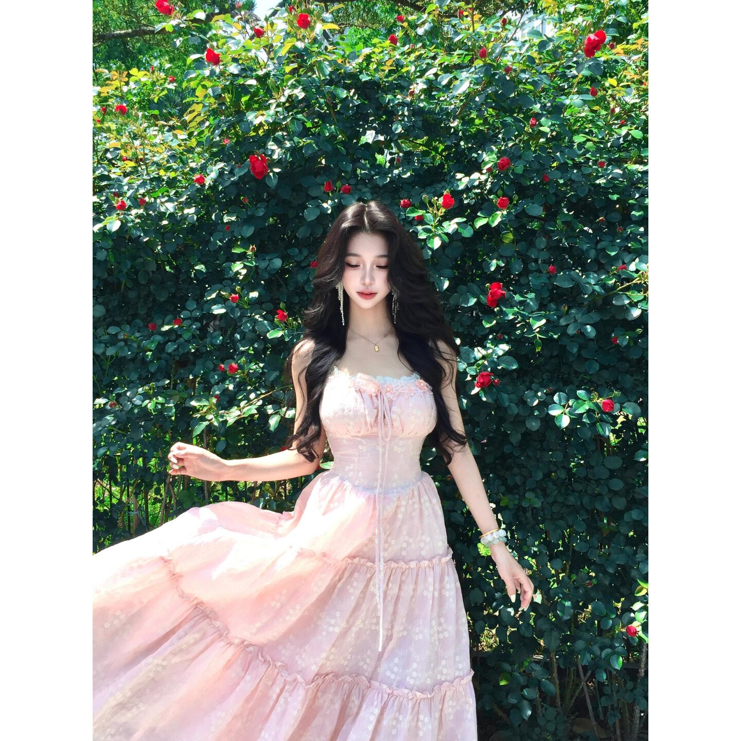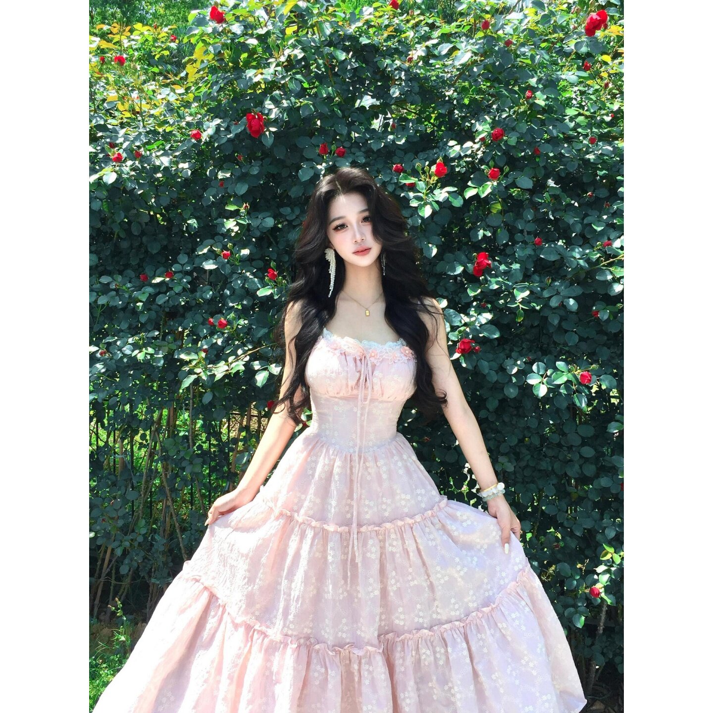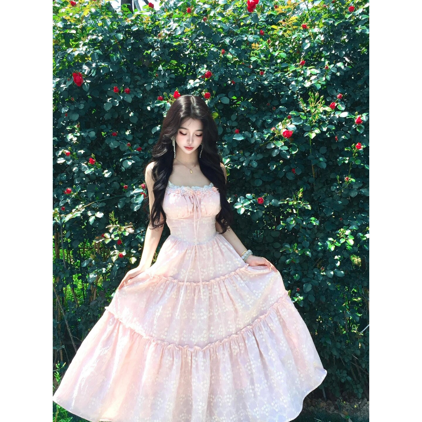 Розовый летний милый корсет, наряд маленькой принцессы, длинная юбка, французский стиль, эффект подтяжки, подарок на день рождения