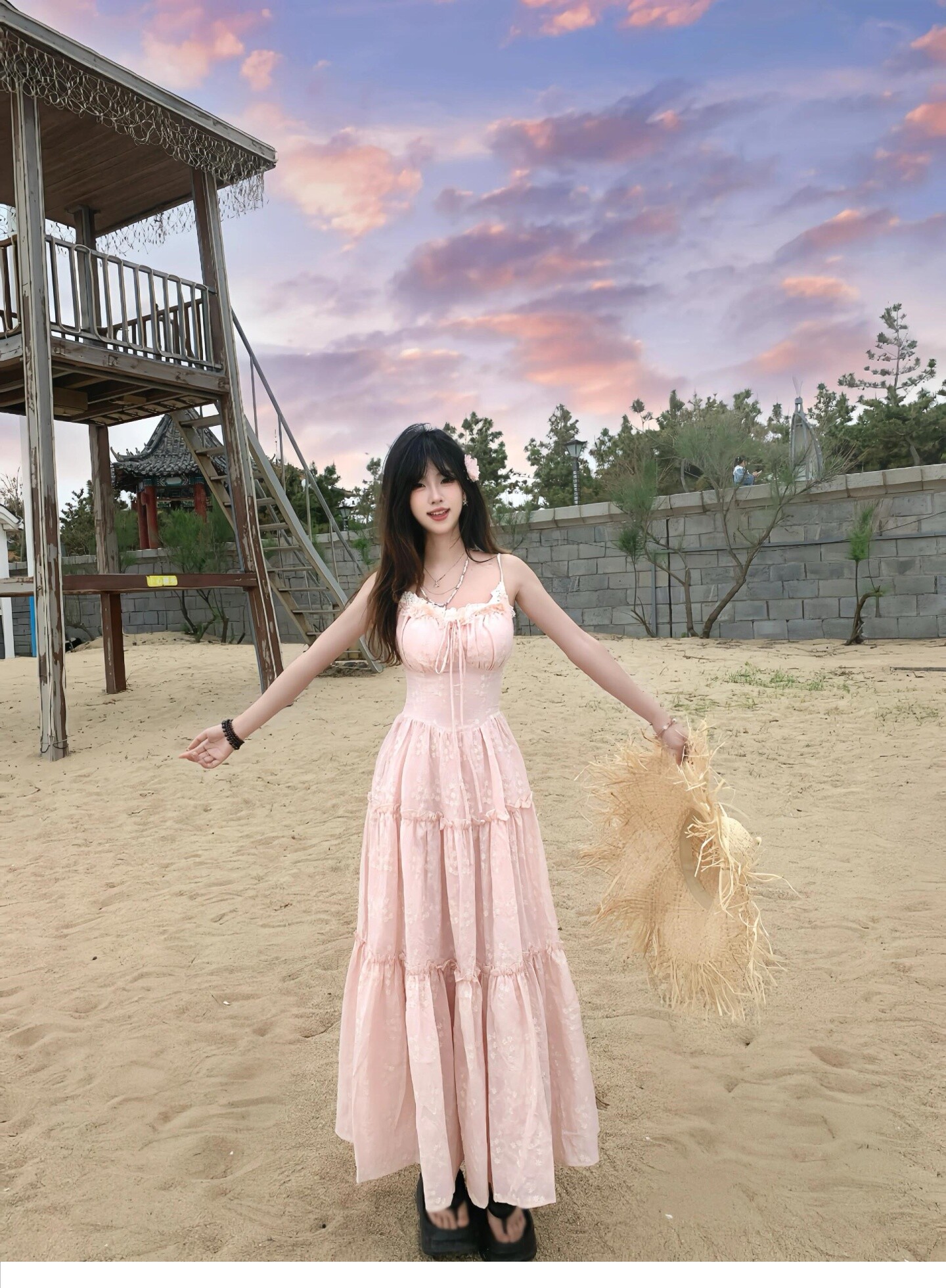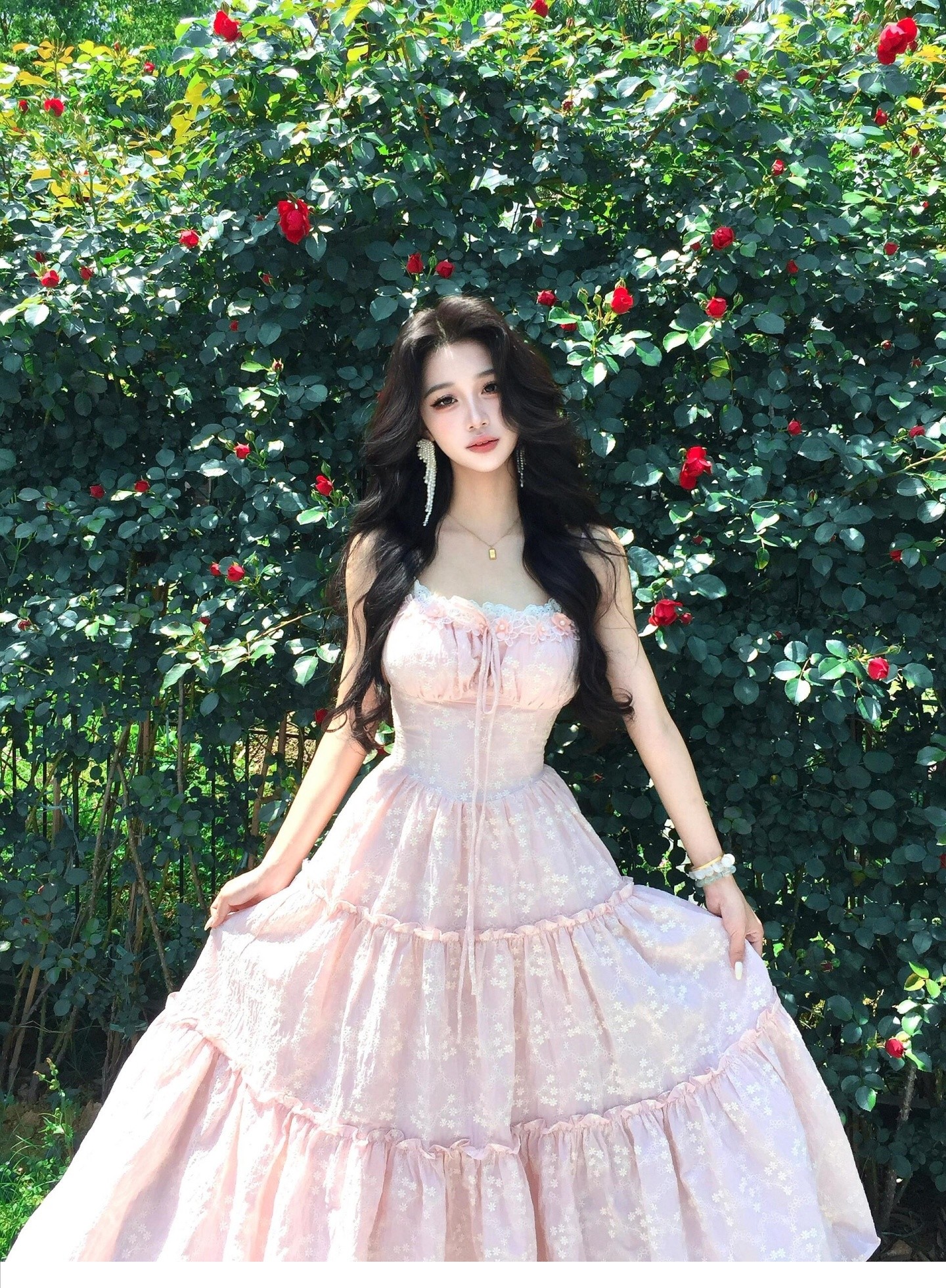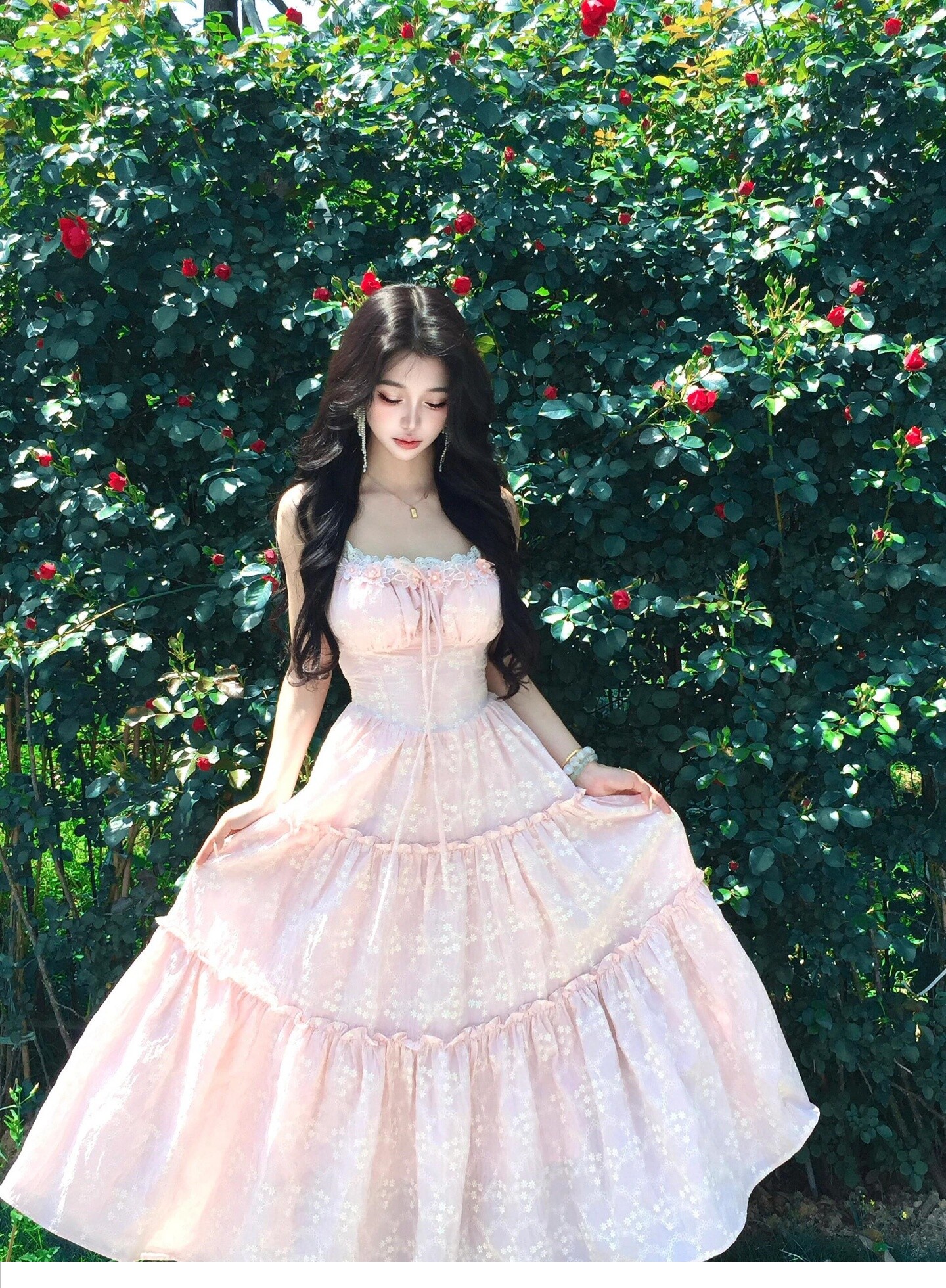 Розовый летний милый корсет, наряд маленькой принцессы, длинная юбка, французский стиль, эффект подтяжки, подарок на день рождения