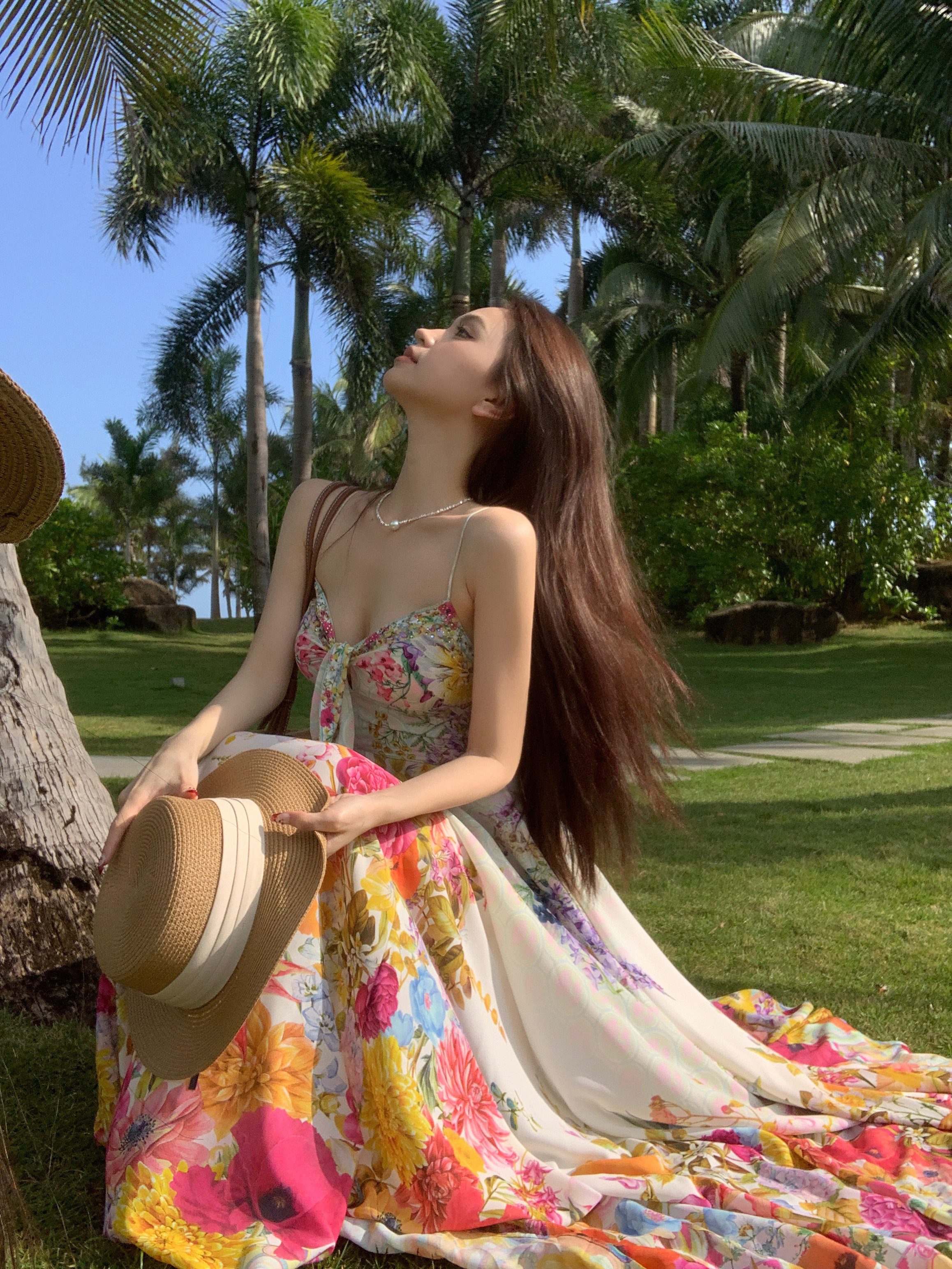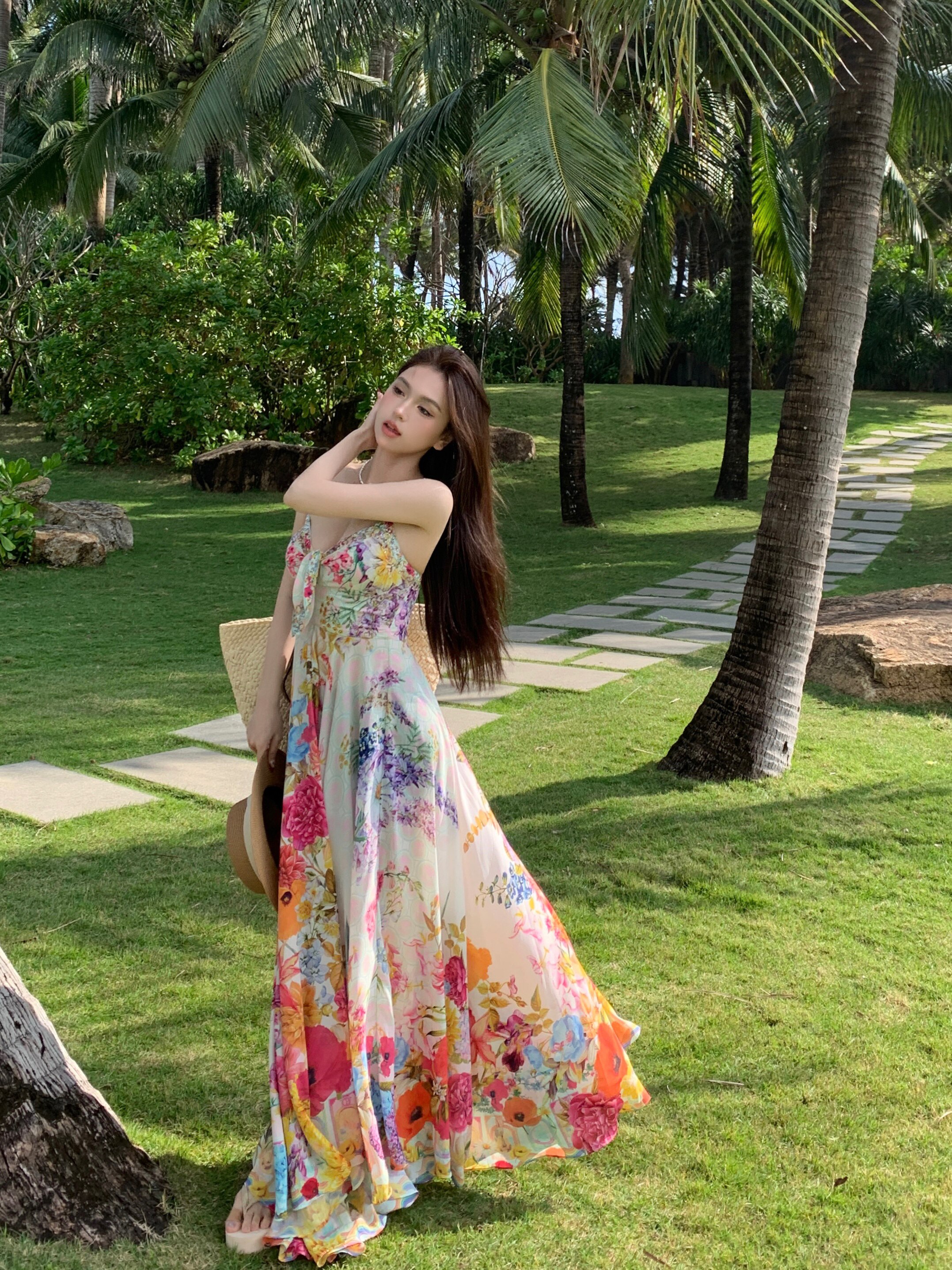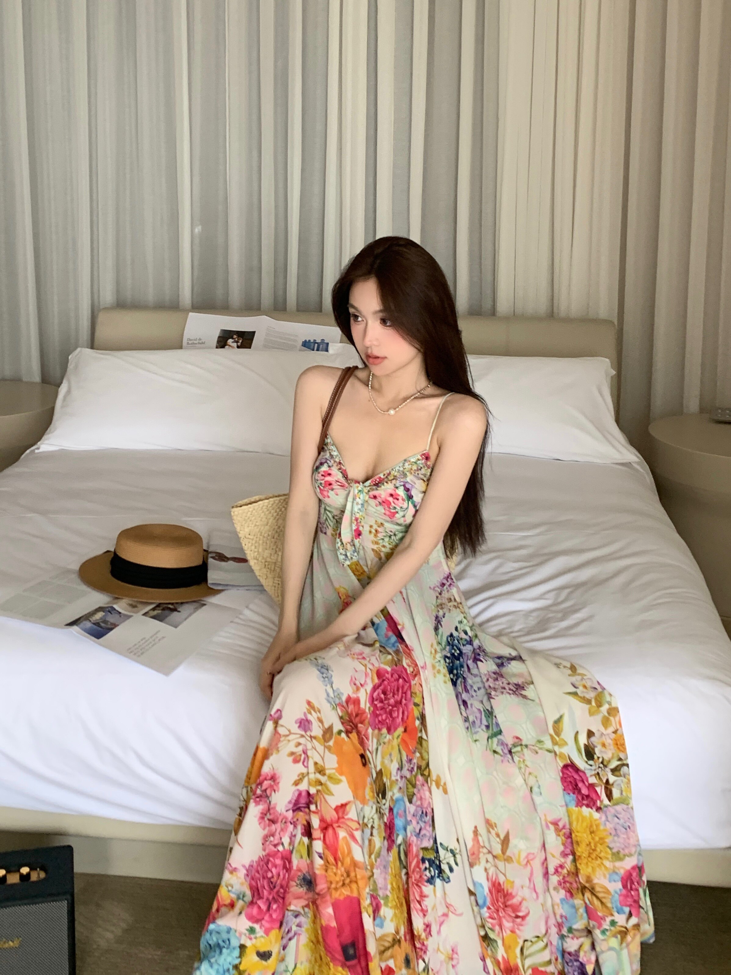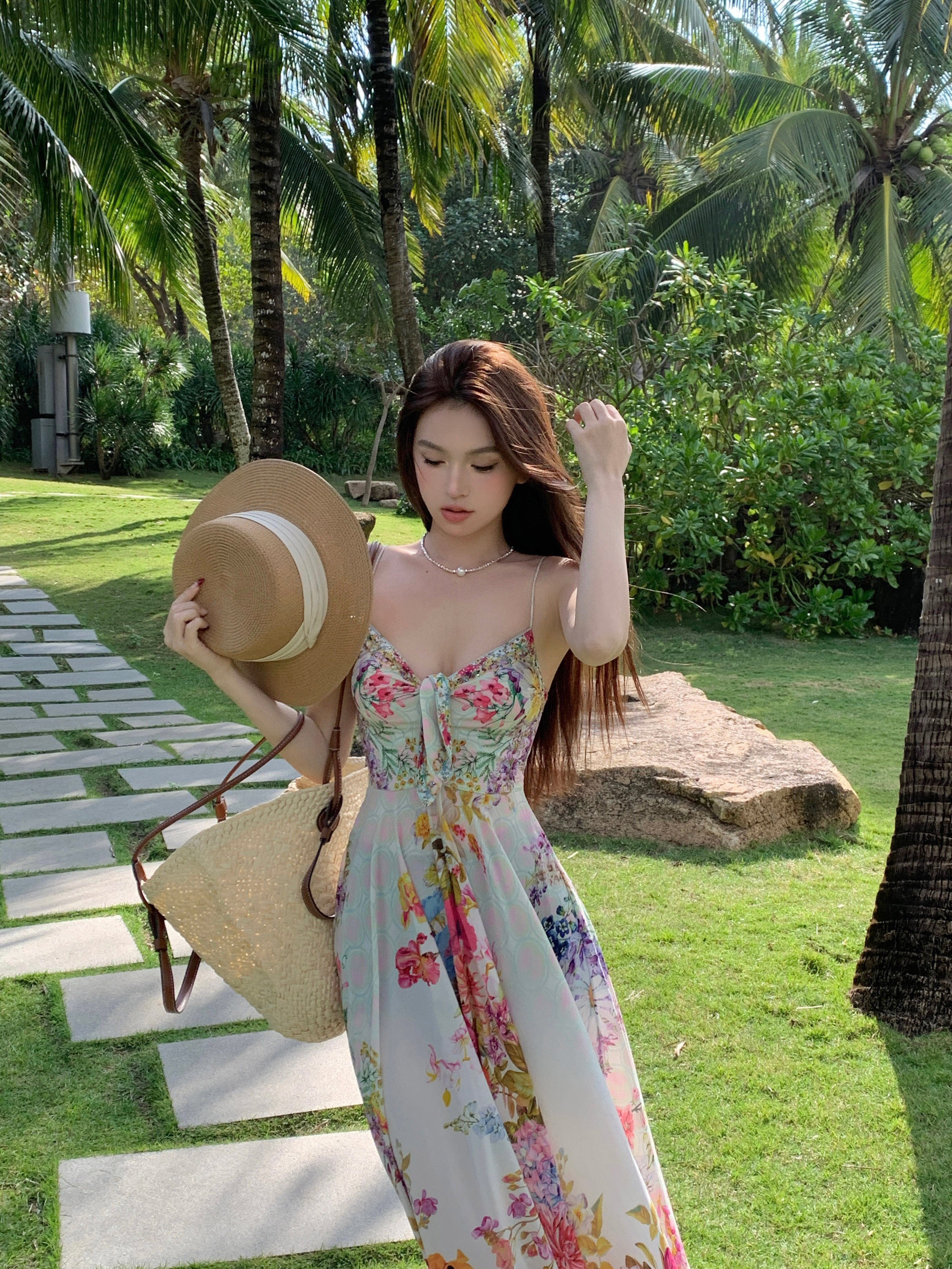 Летний корсет, длинная юбка, платье, А-силуэт, цветочный принт, французский стиль