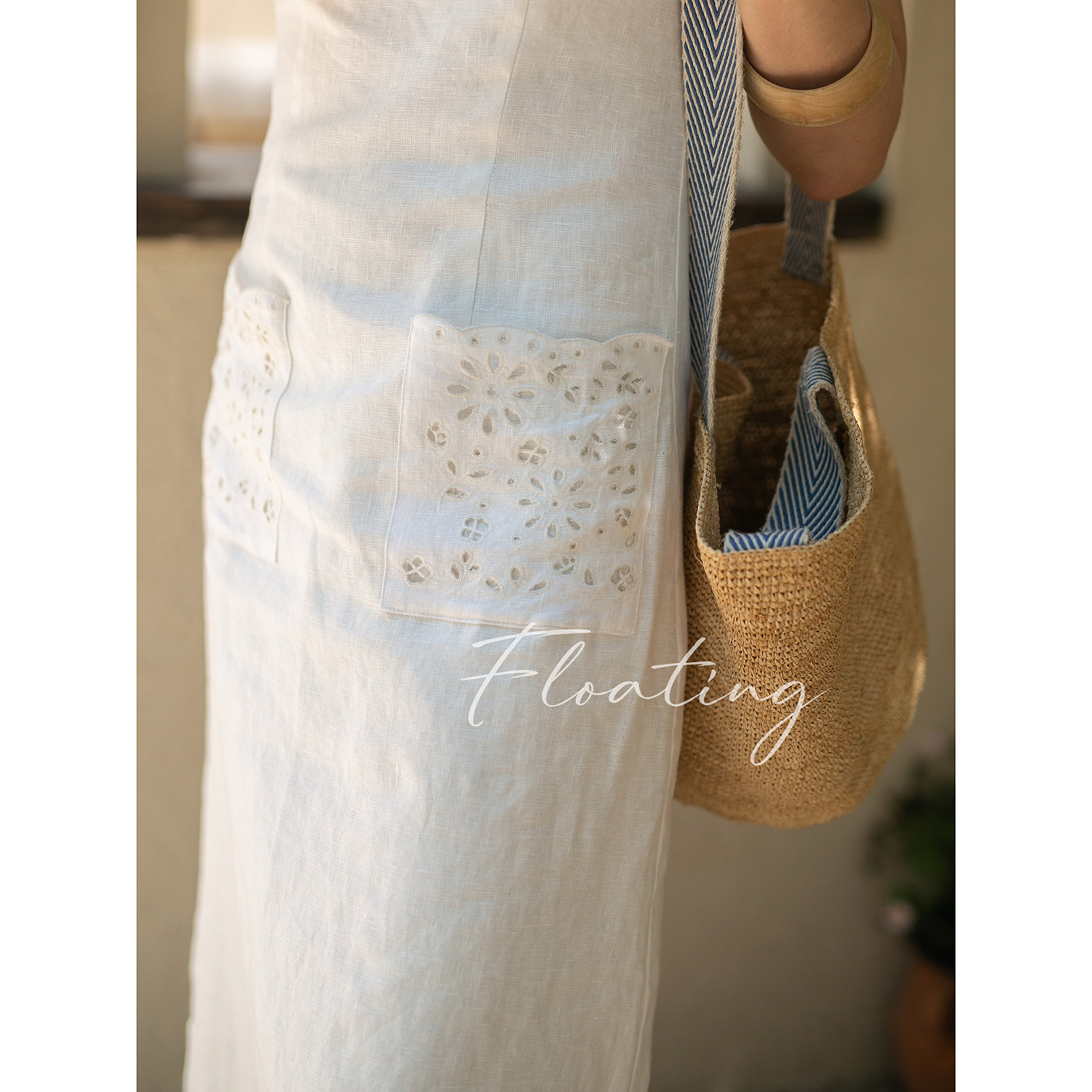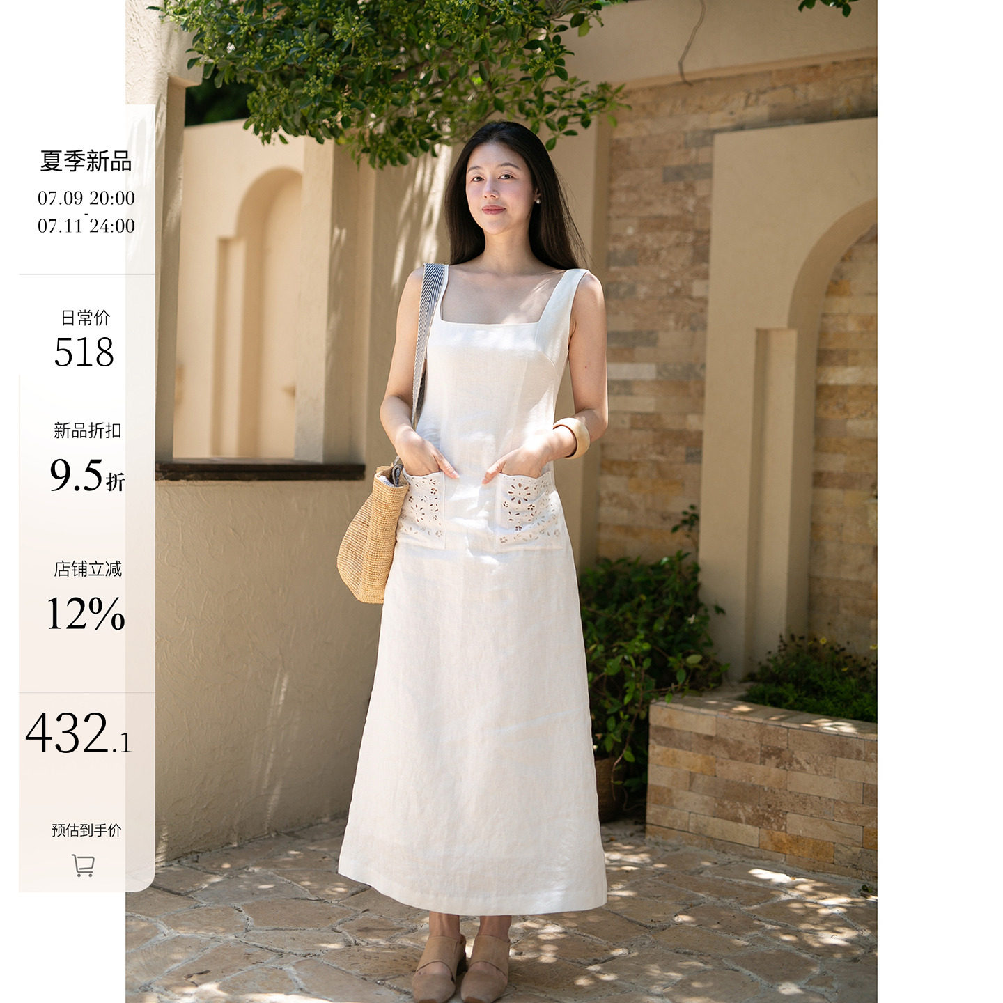 Плавающий [Нет. 7.9, новинка в 20:00] Платье без рукавов с маленькой белой юбкой из 100 льна с французской вышивкой