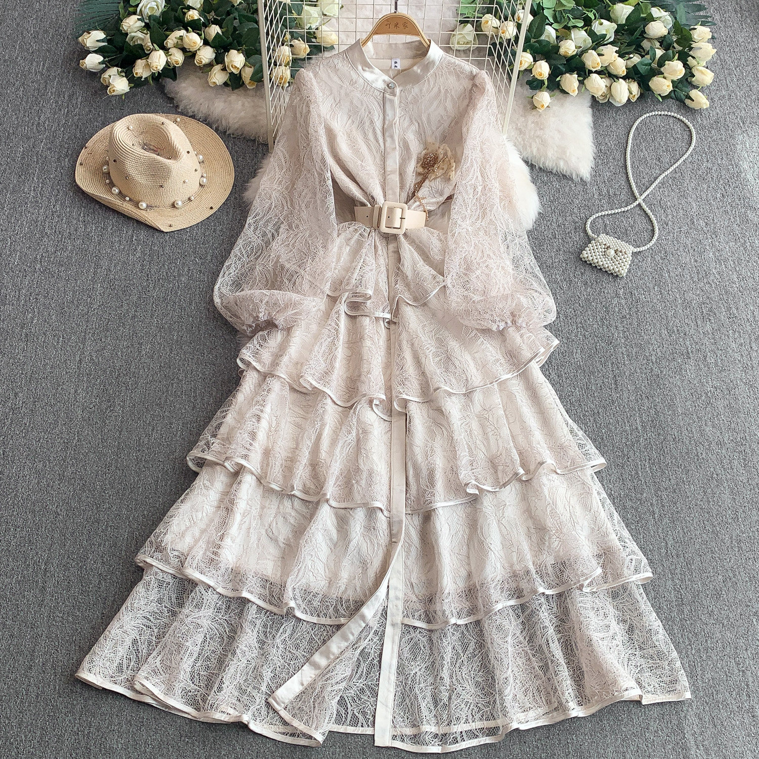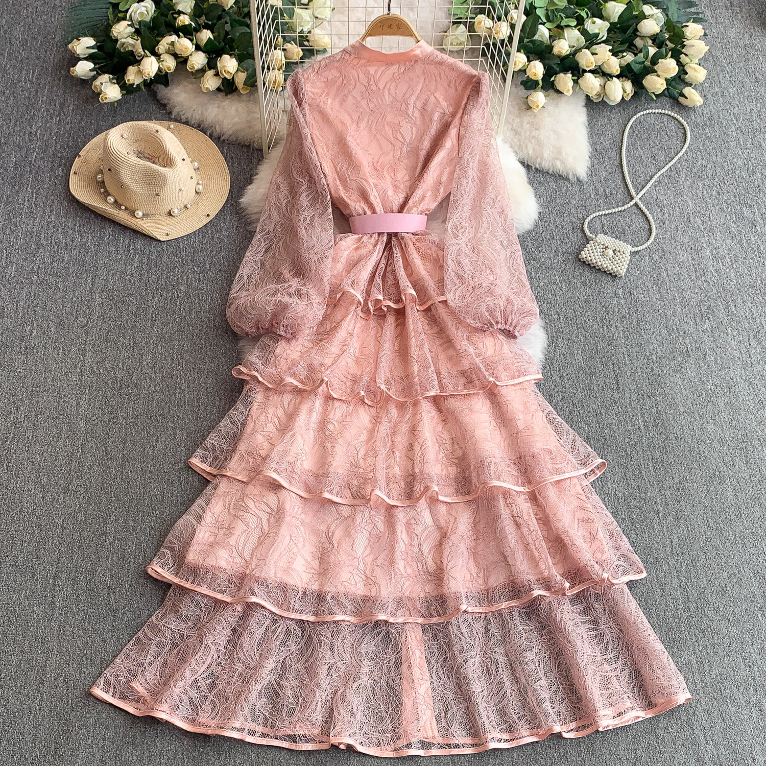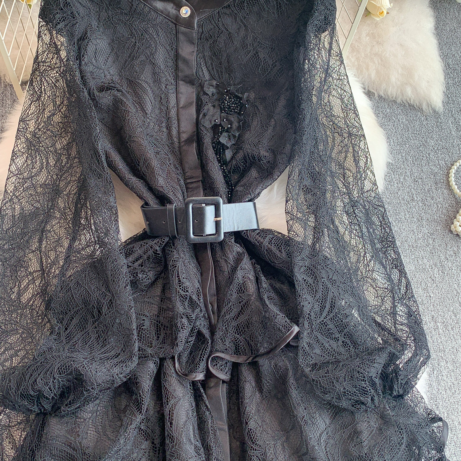 Кружевной лонгслив, приталенный корсет, вечернее платье, французский стиль, изысканный стиль, кружевное платье, в цветочек
