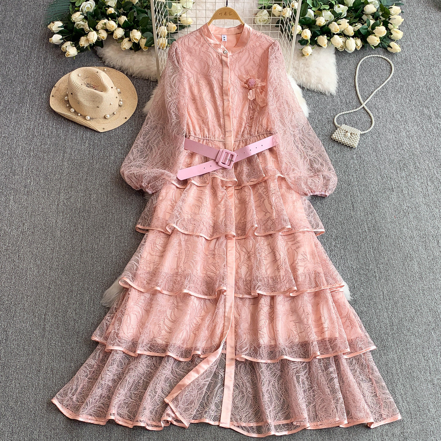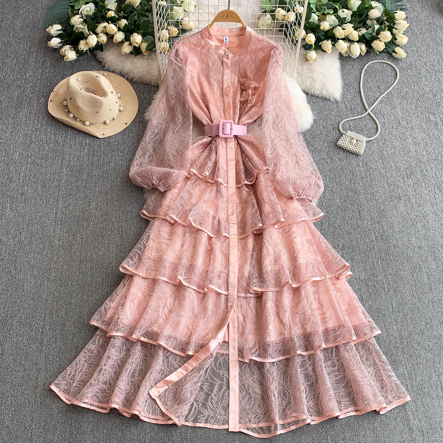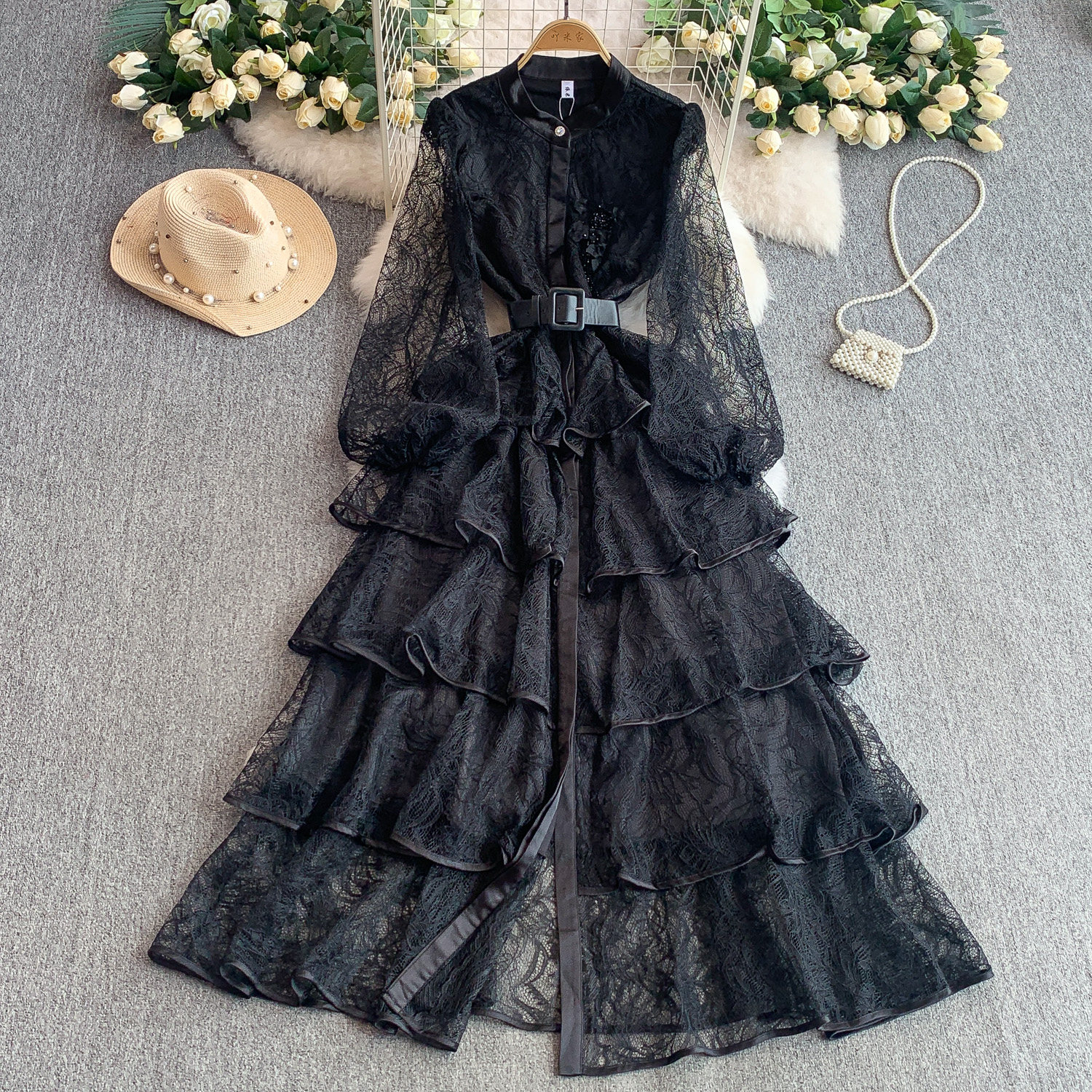 Кружевной лонгслив, приталенный корсет, вечернее платье, французский стиль, изысканный стиль, кружевное платье, в цветочек