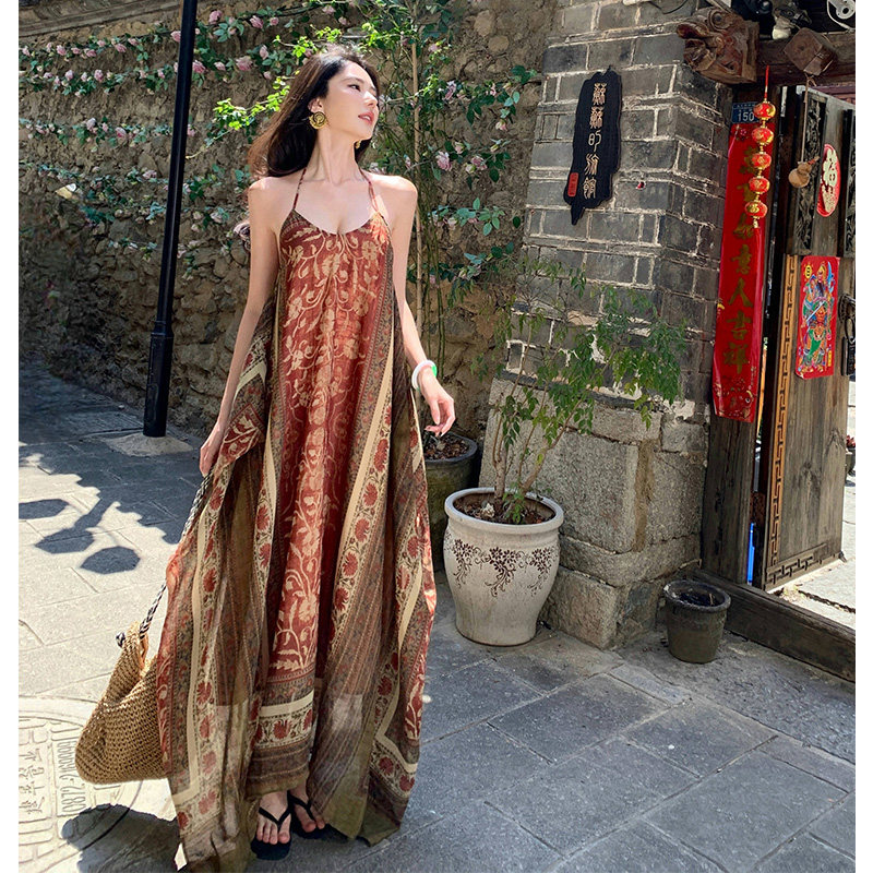Этническое ретро платье из провинции Юньнань, этнический стиль, стиль бохо, китайский стиль, в цветочек