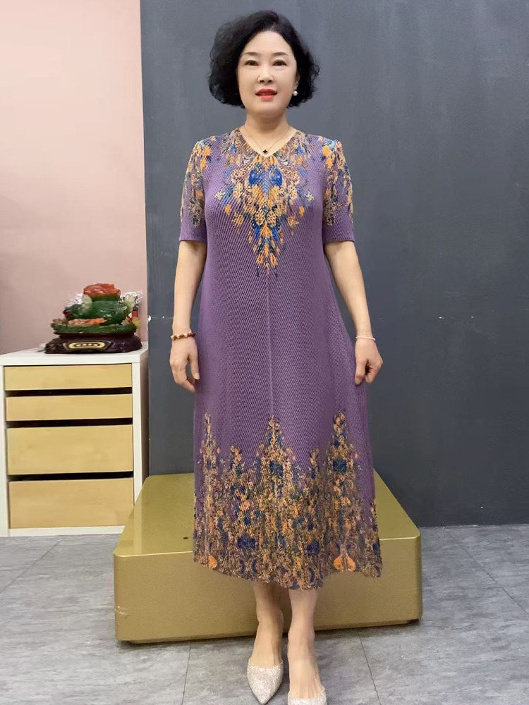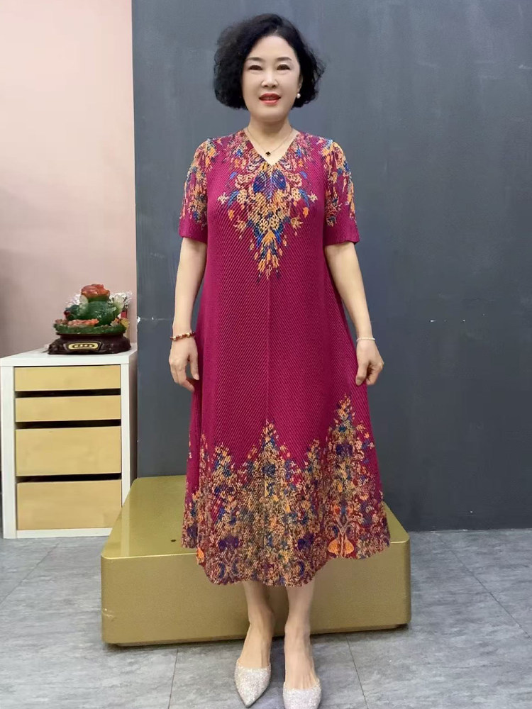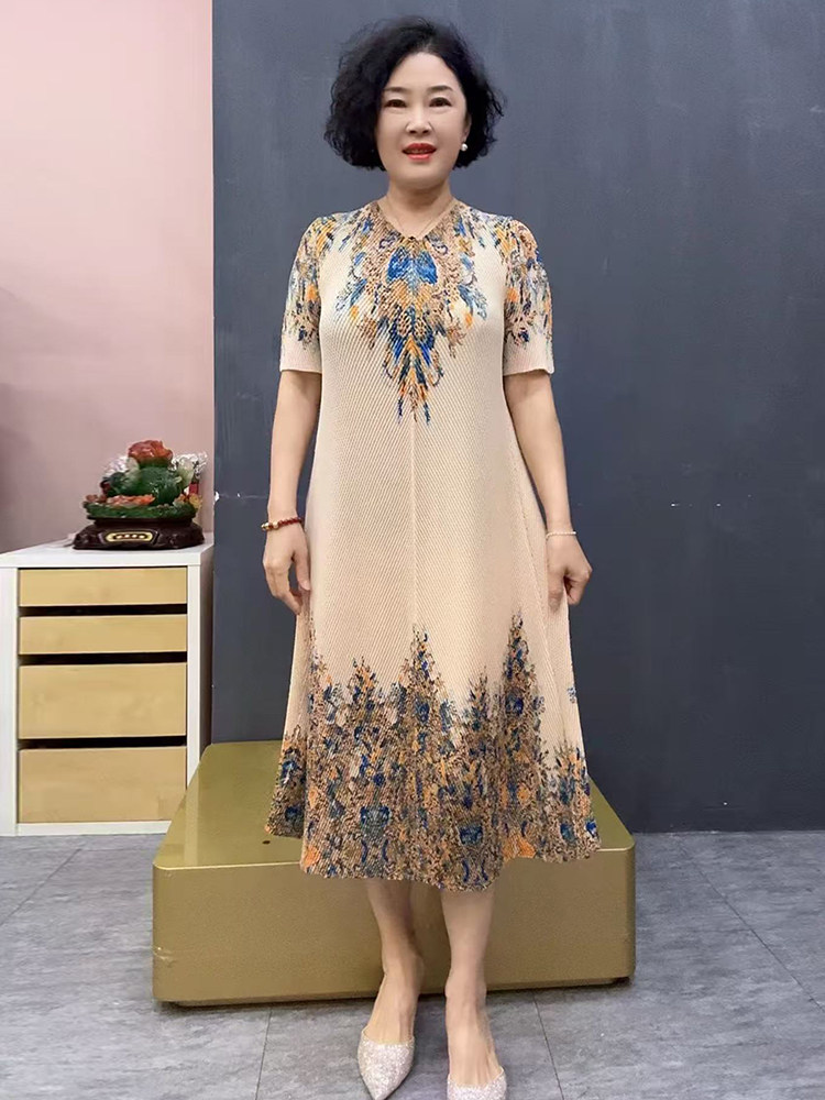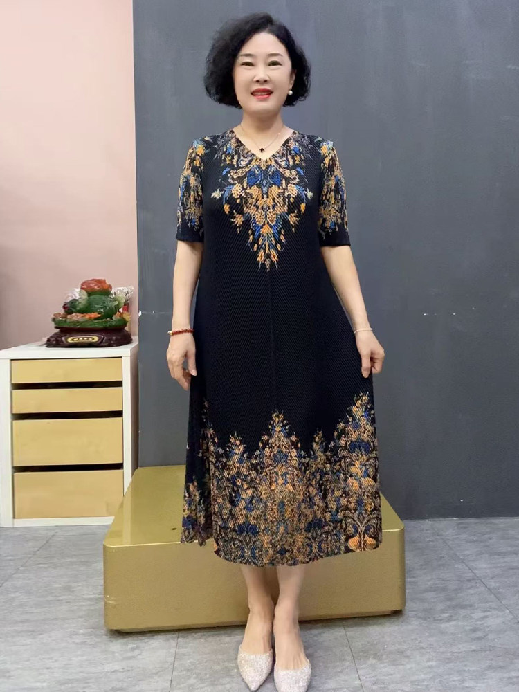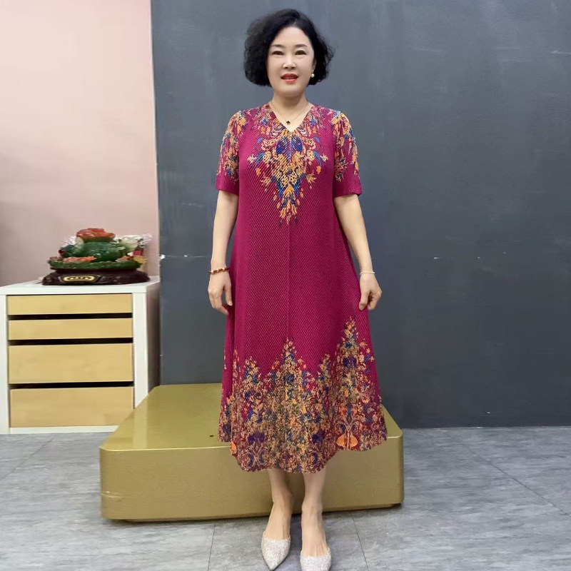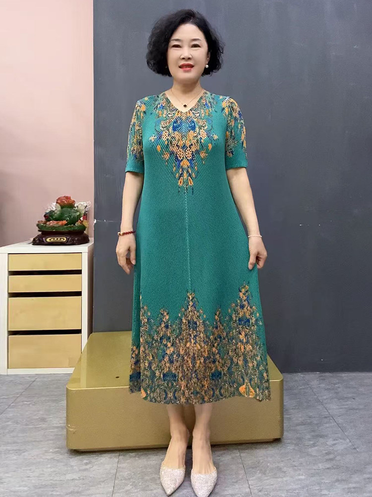 Шелковая эластичная летняя длинная юбка для матери, короткий рукав, свободный крой, размер