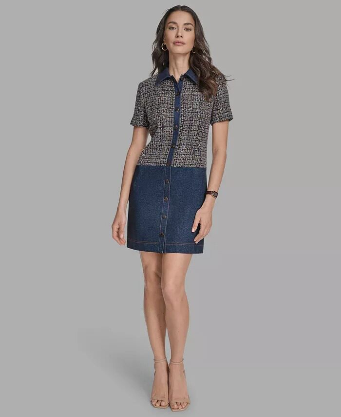 Вместительное и большое джинсовое маленькое платье, США, короткий рукав