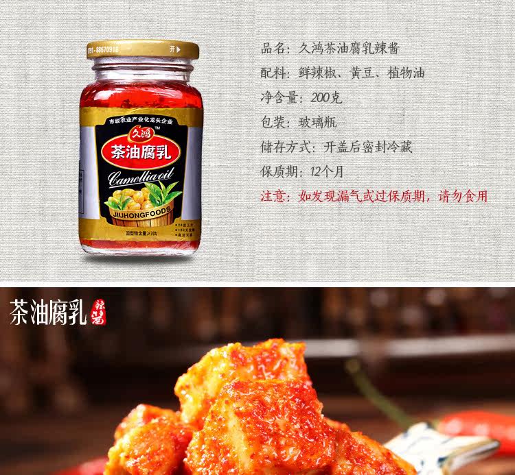 Jiangxi Special Products jiuhong Tea Oil Filter 200g*2 Бутылка прямой милдо тофу пищевая воняние тофу вонючие тофу бесплатная доставка