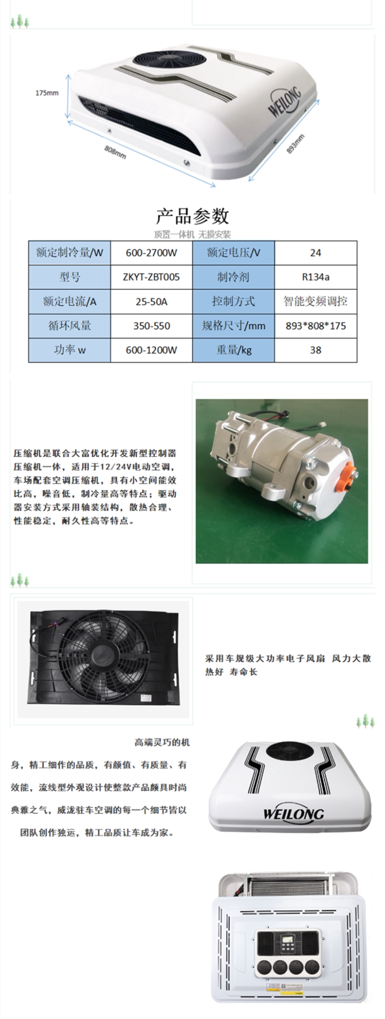 Weizheng Ultra -Thin 12V24V Парковка воздух -кондиционированное грузовик RV Car inar -частотный конверсию крышки манга