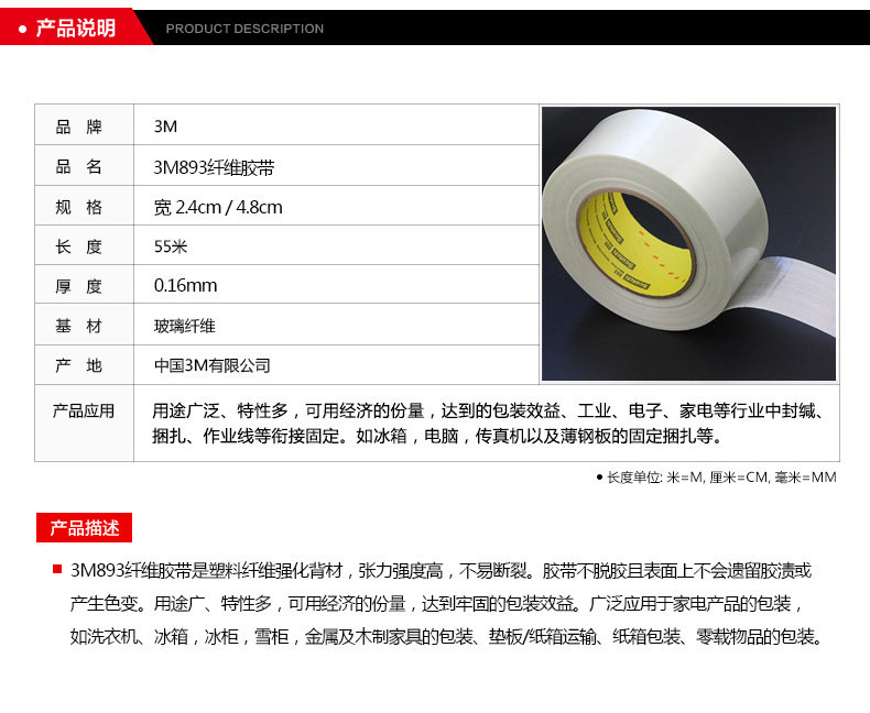 Подлинная 3M893 Клебная лента Фиксированная сильная липкость без обезжиренной стеклянной волоконной ленты.