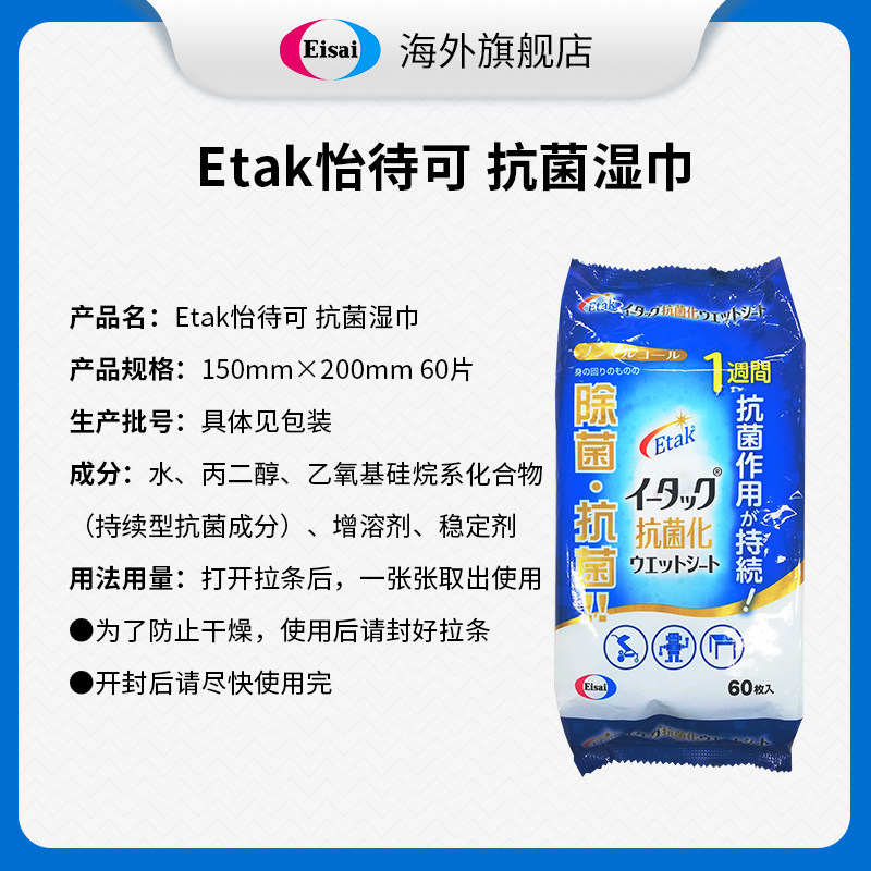 Японский материал Wei etak yiyi антибактериальный влажный шарф 60 домашних животных непрерывно алкоголь без стерилизации домашних животных кухонная стерилизация