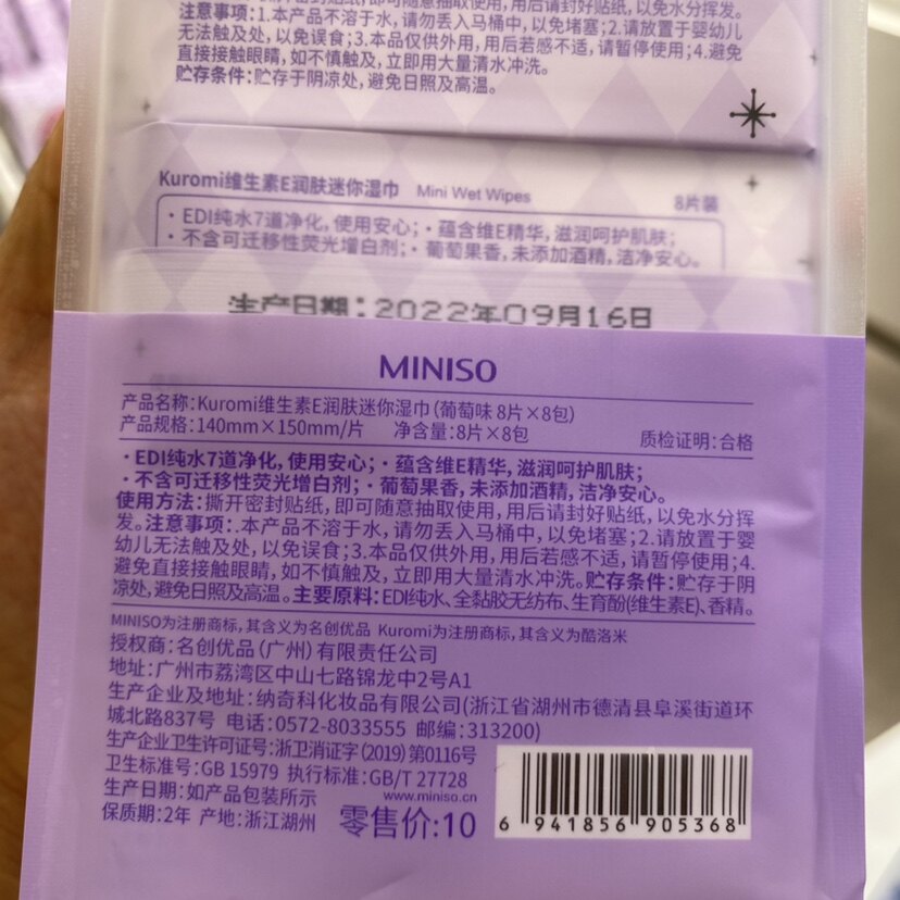 Sanrio Pixar Pokémon Series Mini Wep Wipes Miniso Miniso Vitamin E Baby Pure Water