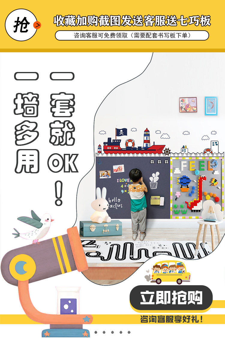 磁猫 Милая мультяшная экологичная двухэтажная самоклеющаяся многоцветная доска для рисования для рисования на стену без пыли, граффити, делается под заказ