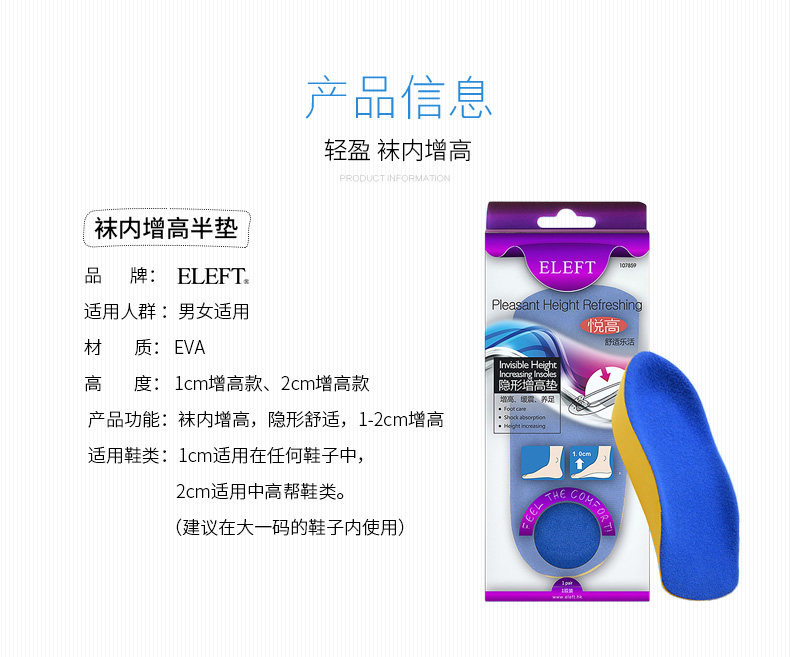 ELEFT Невидимые увеличивающие стельки Внутренние носки Внутренняя увеличивающая подушечка Полная подушечка Дышащая женская и мужская легкая увеличивающая половинная подушечка 123 см