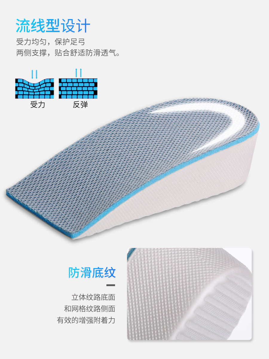 Черные спортивные дышащие невидимые комфортные стельки для увеличения роста подходит для мужчин и женщин, амортизирующие полустельки, впитывают пот и запах