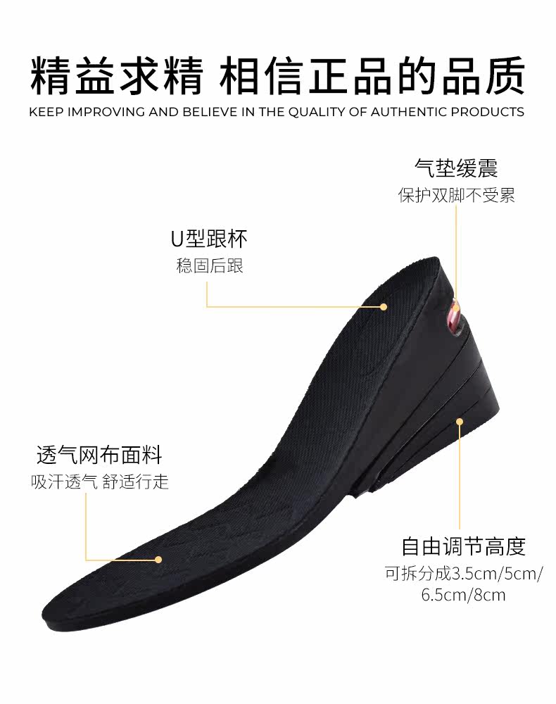 Внутренняя увеличивающая стелька для мужчин 3, 5, 8 см, регулируемая, дышащая, впитывающая пот женская полная подушечка, дезодорирующая внутренняя стелька по высоте
