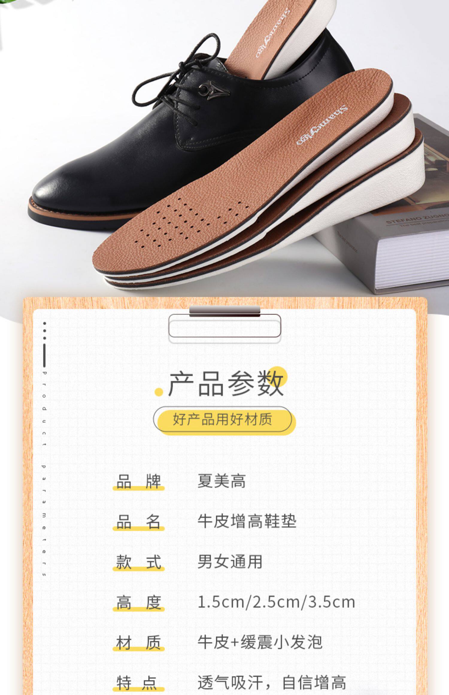 Комфортные дышащие невидимые кожаные стельки для увеличения роста