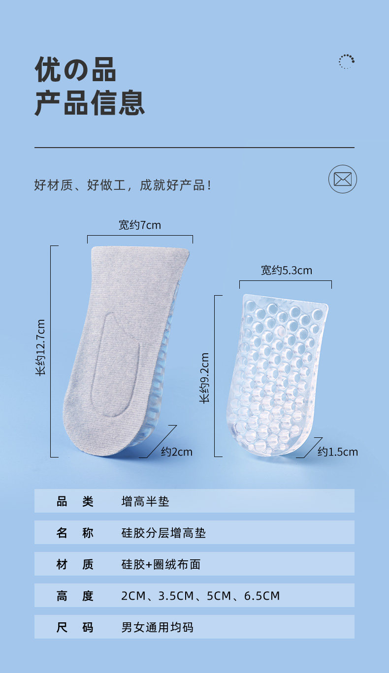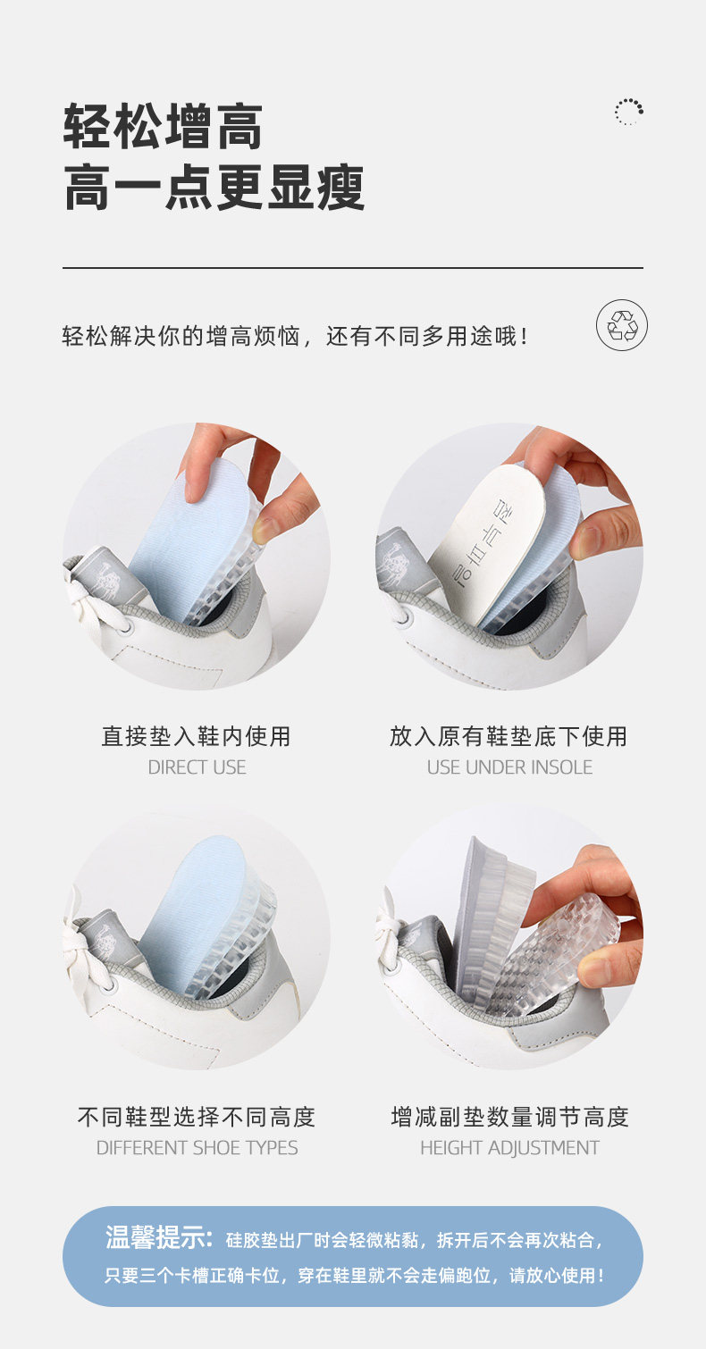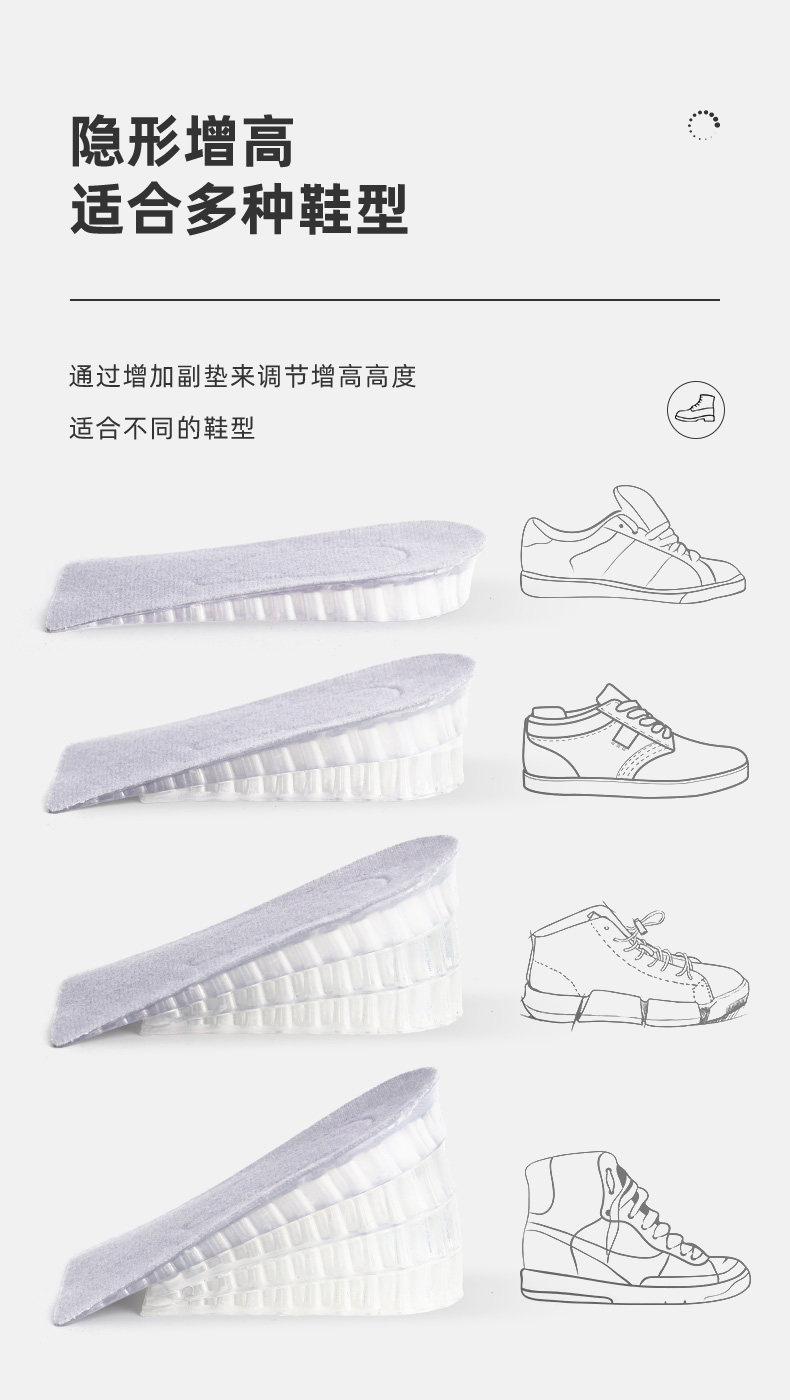 Силиконовые стельки для увеличения роста, напяточники, невидимые полустельки