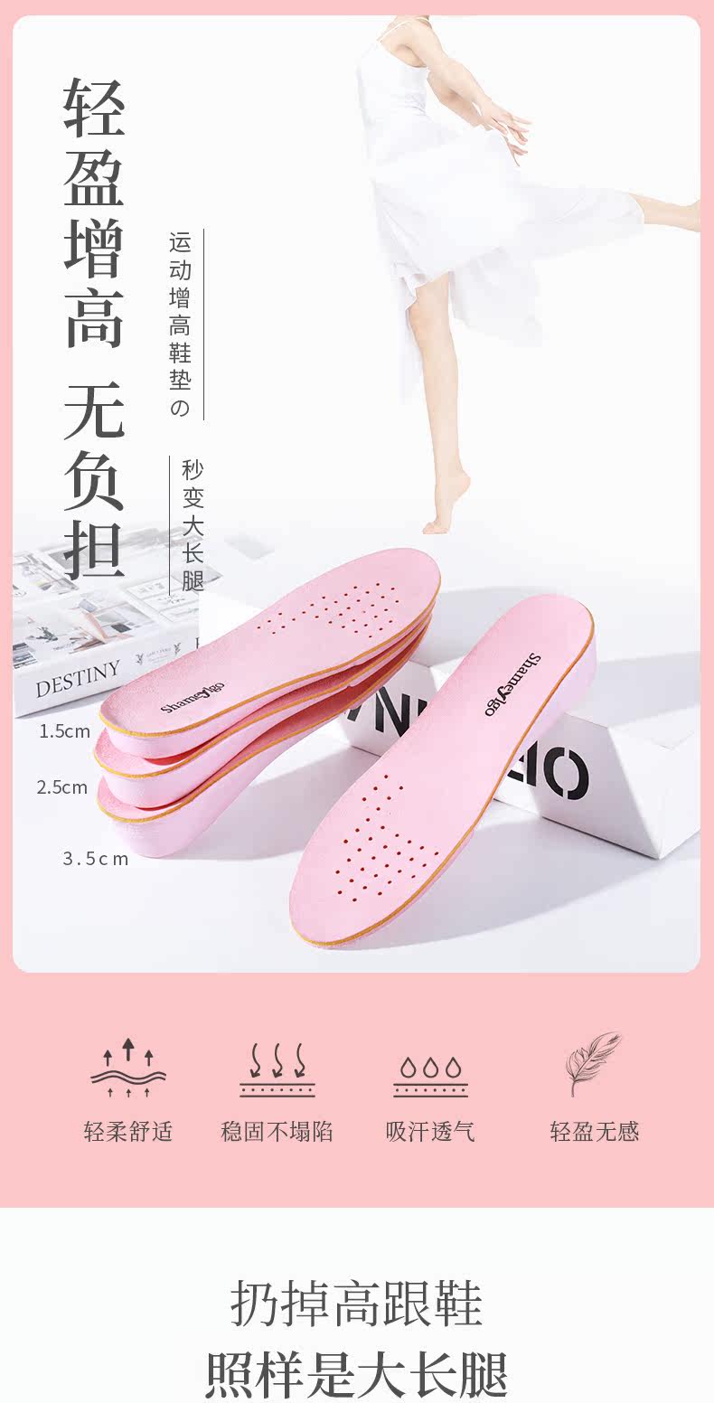 Дышащие комфортные невидимые спортивные стельки для увеличения роста для отдыха, впитывают пот и запах