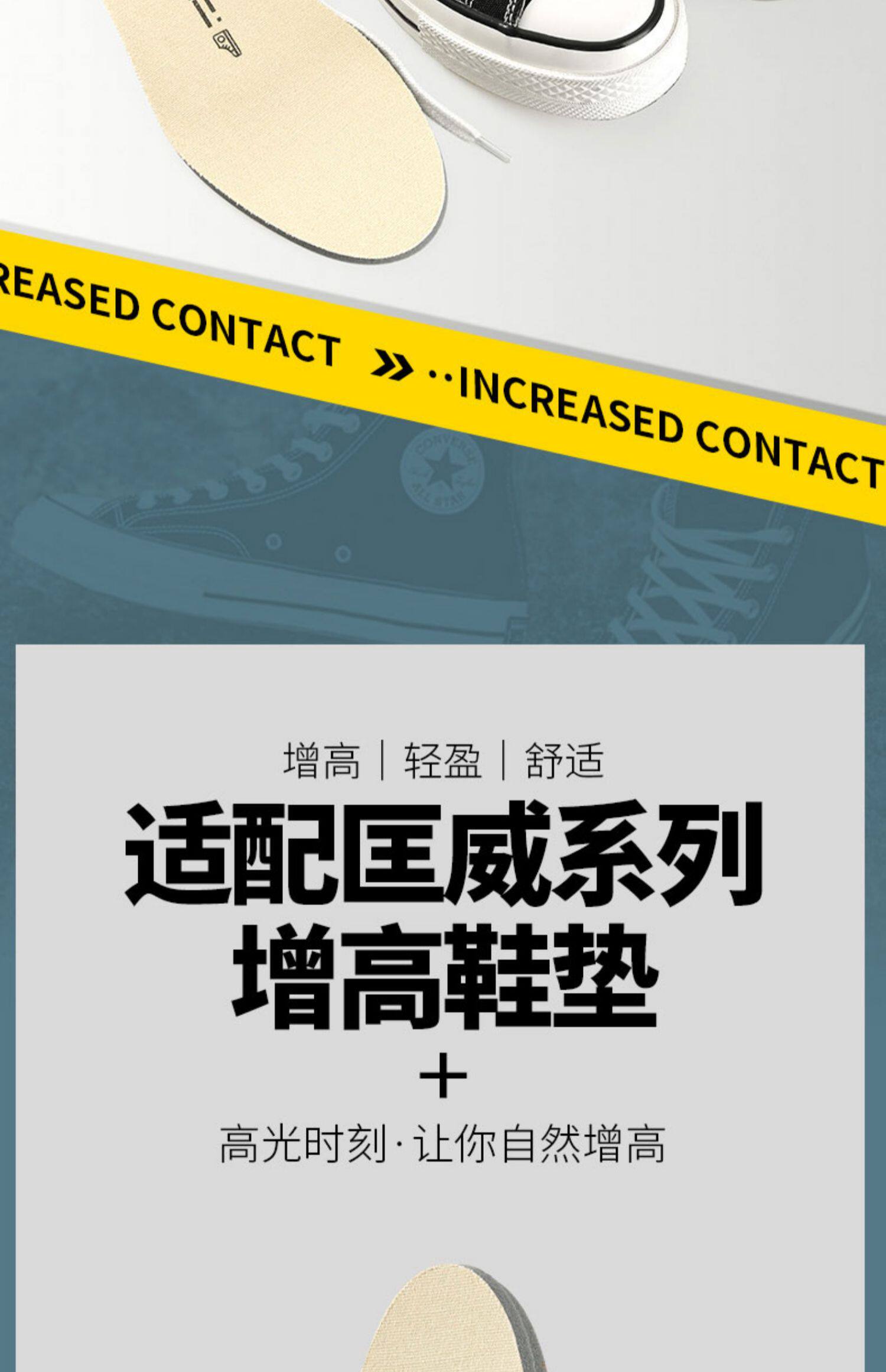 Конверсы, тканевые невидимые стельки для увеличения роста
