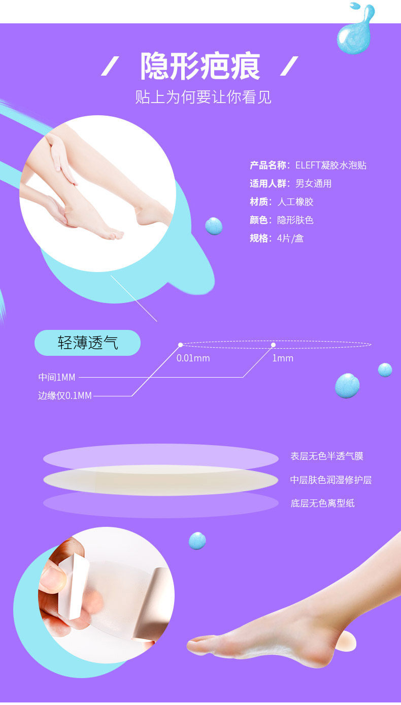 Электронные антисвяживающие наклейки на ногах наклейки с толстыми полуавемами и публикация волдырей для воды+волновая передняя ладонь+гель обратно следуйте