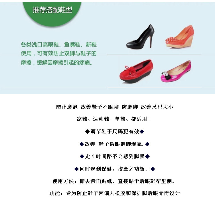 | 2.Предотвратите улучшение пузырьков без каблуков, чтобы предотвратить шлифовальные ножки и улучшить размер.Сандалии, кроссовки, одиночная обувь, все это применимо | ||