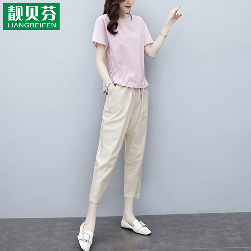 Комплект, летняя одежда, из хлопка и льна, 2020, 45 лет, в западном стиле