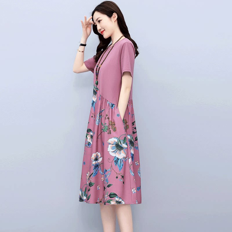 Летнее платье, из хлопка и льна, в цветочек, в западном стиле