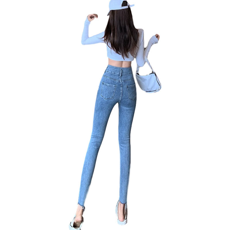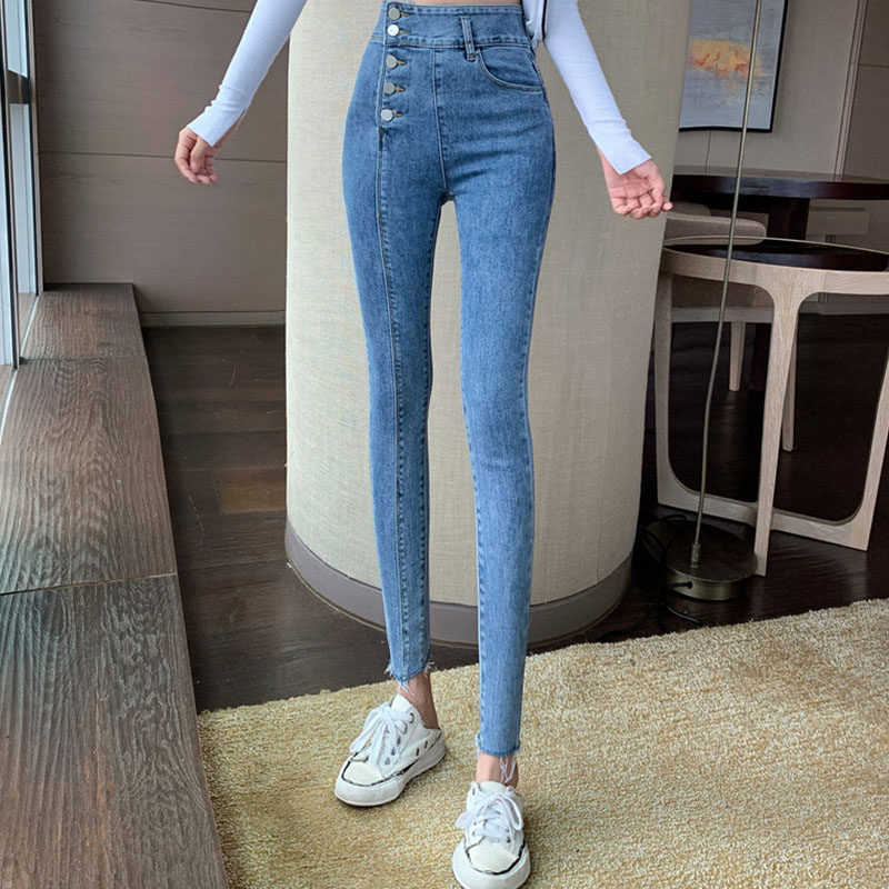 Джинсы, штаны, приталенный брендовый карандаш, 2021 года, новая коллекция, высокая талия, в обтяжку