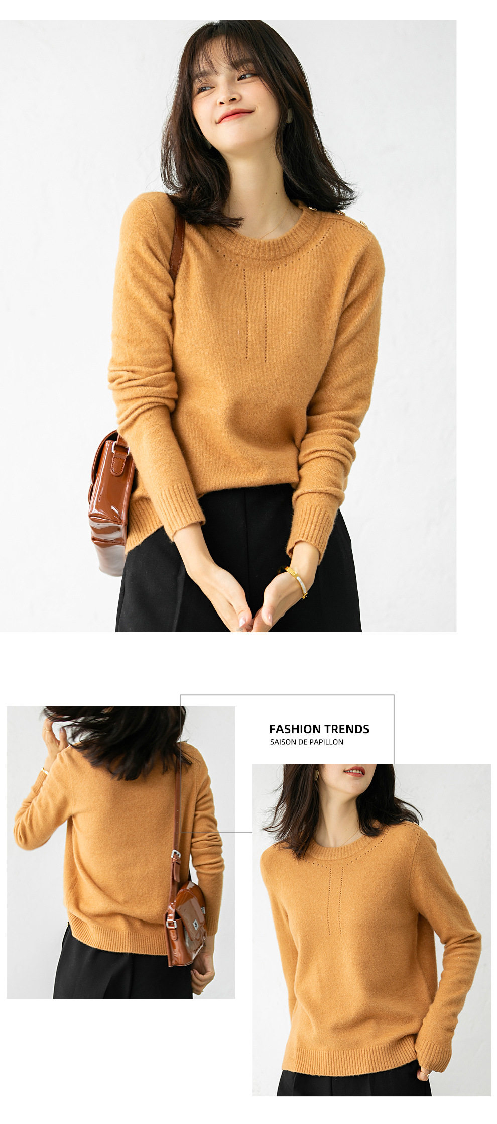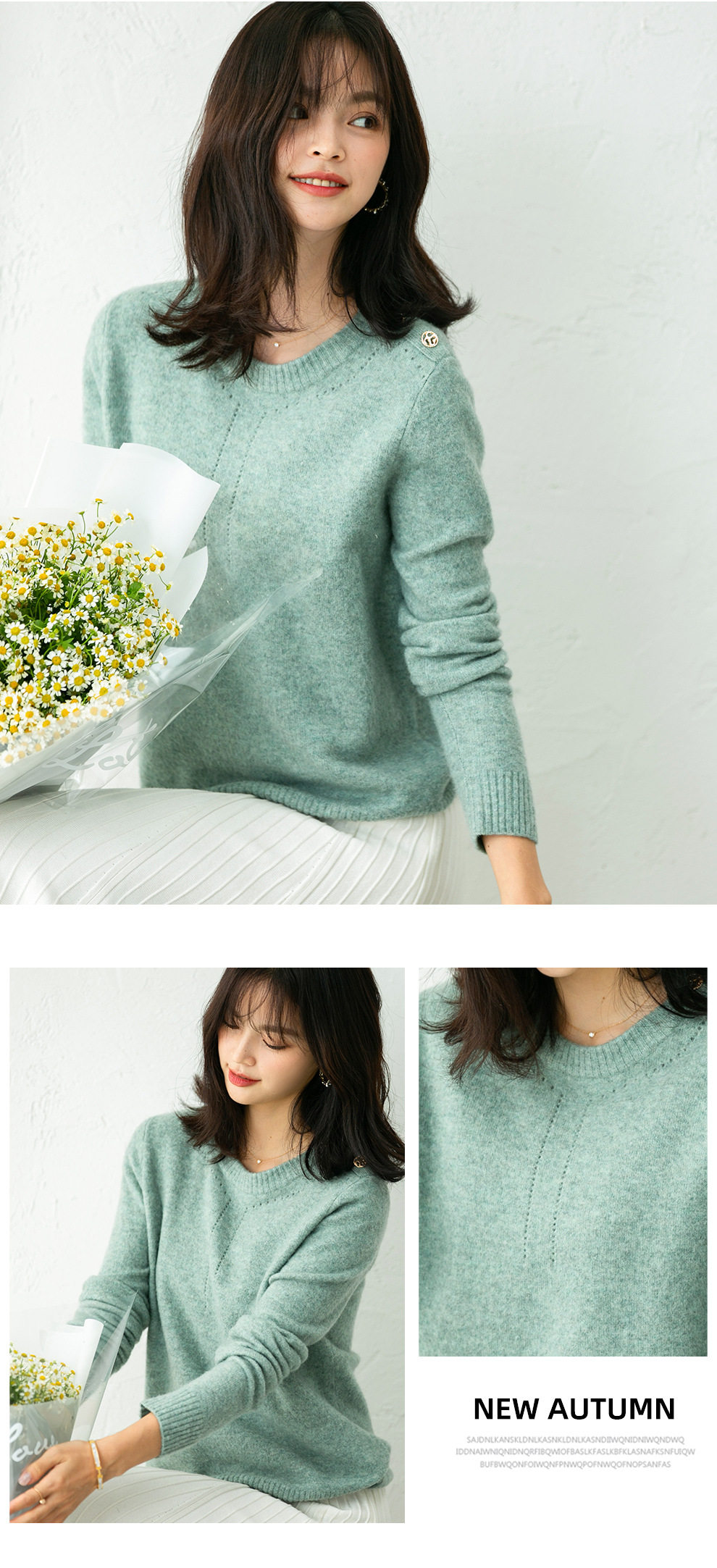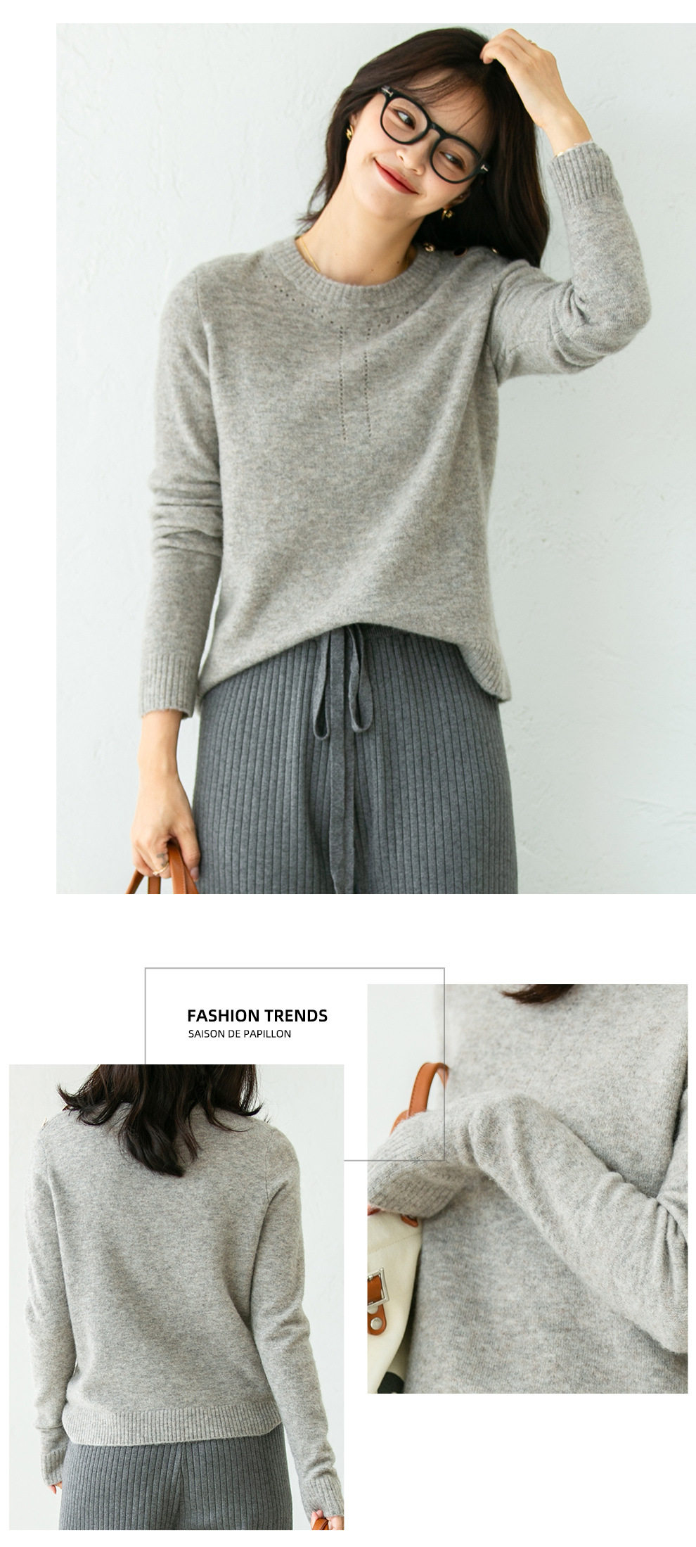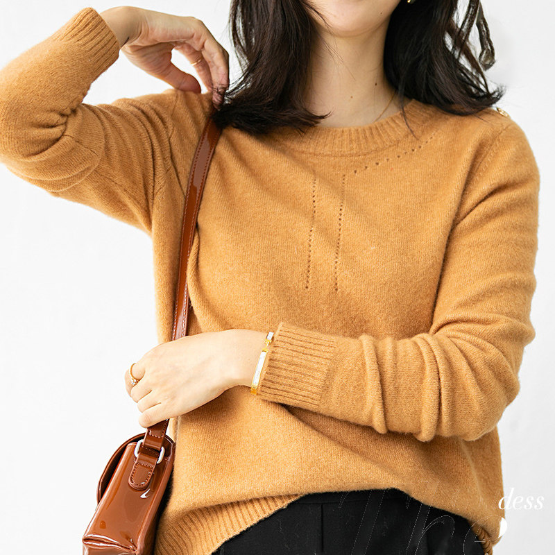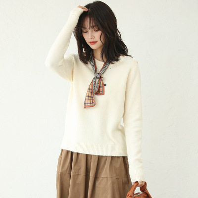 Демисезонный трикотажный шерстяной свитер с круглым воротником, свободный крой
