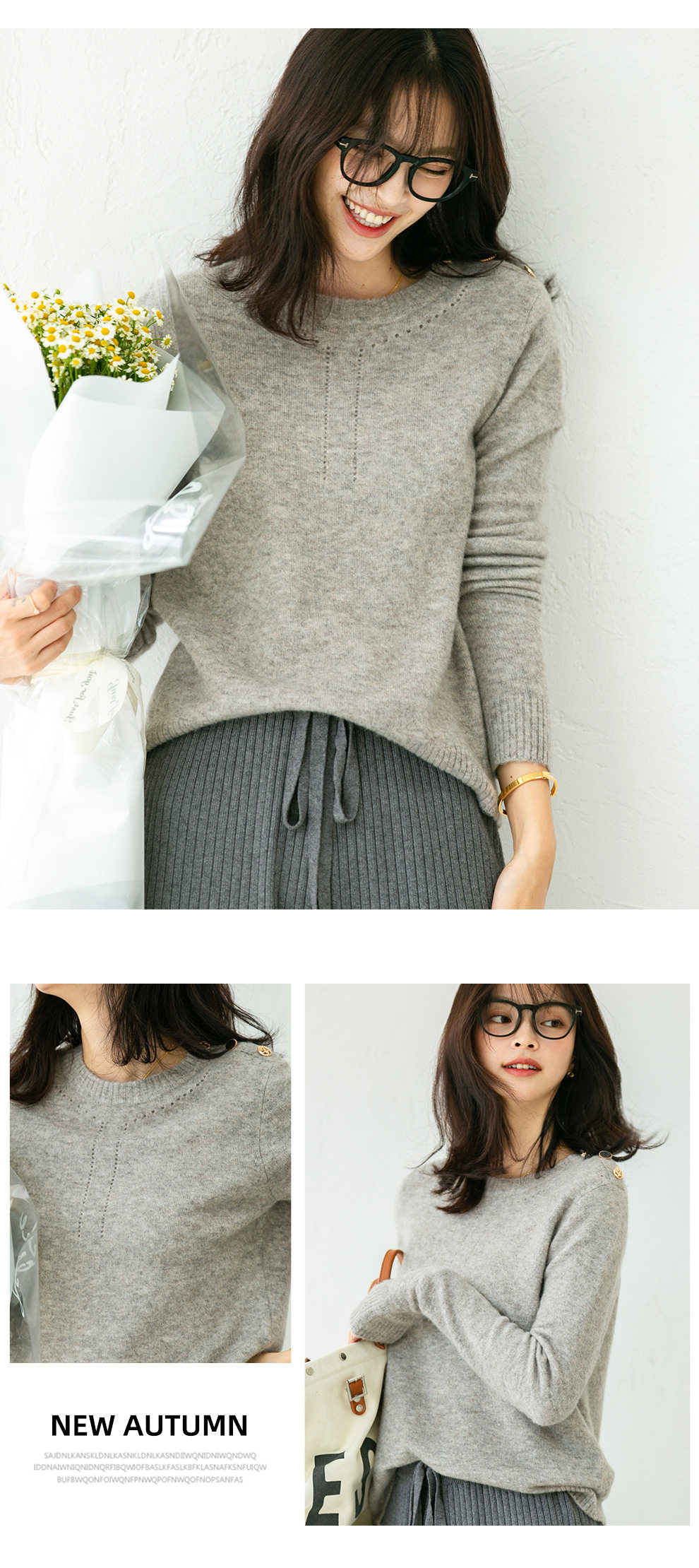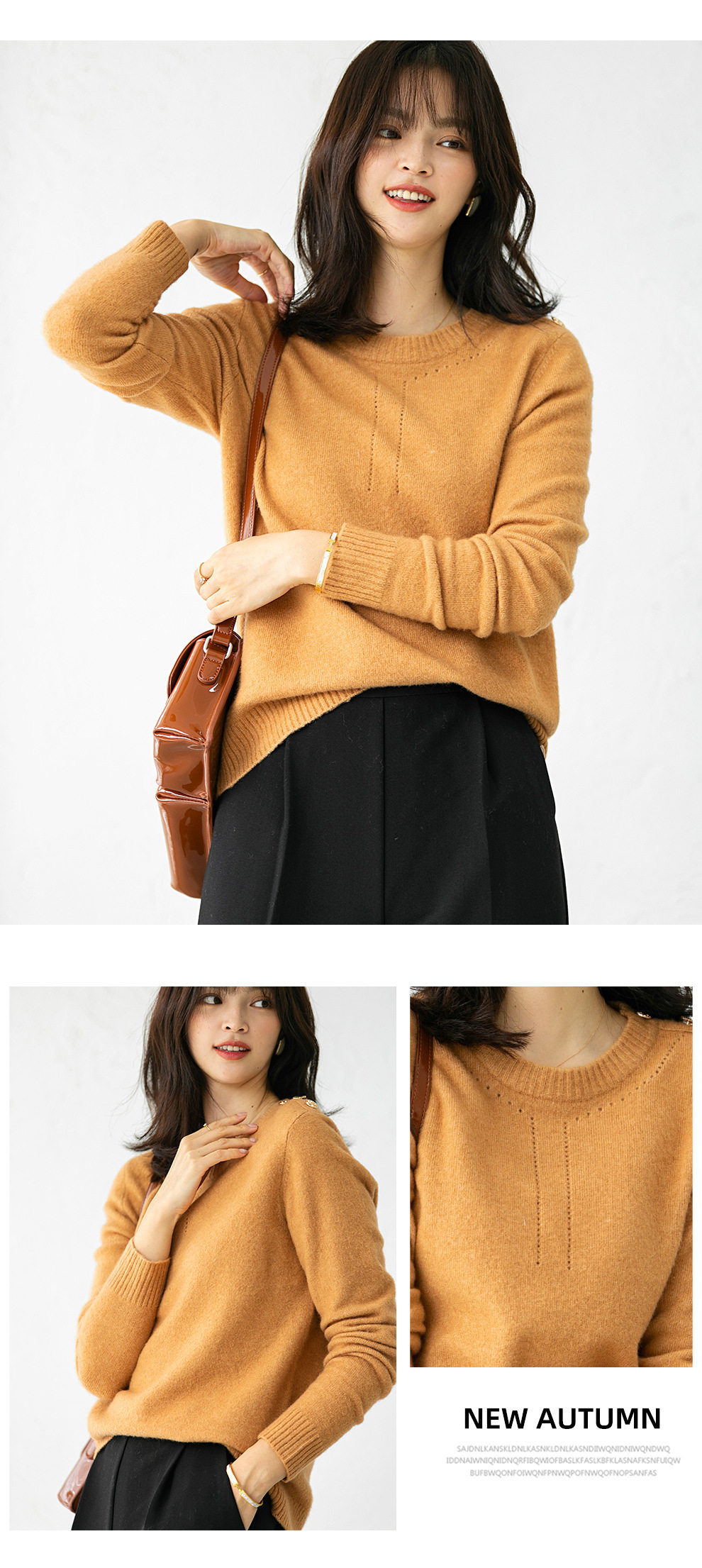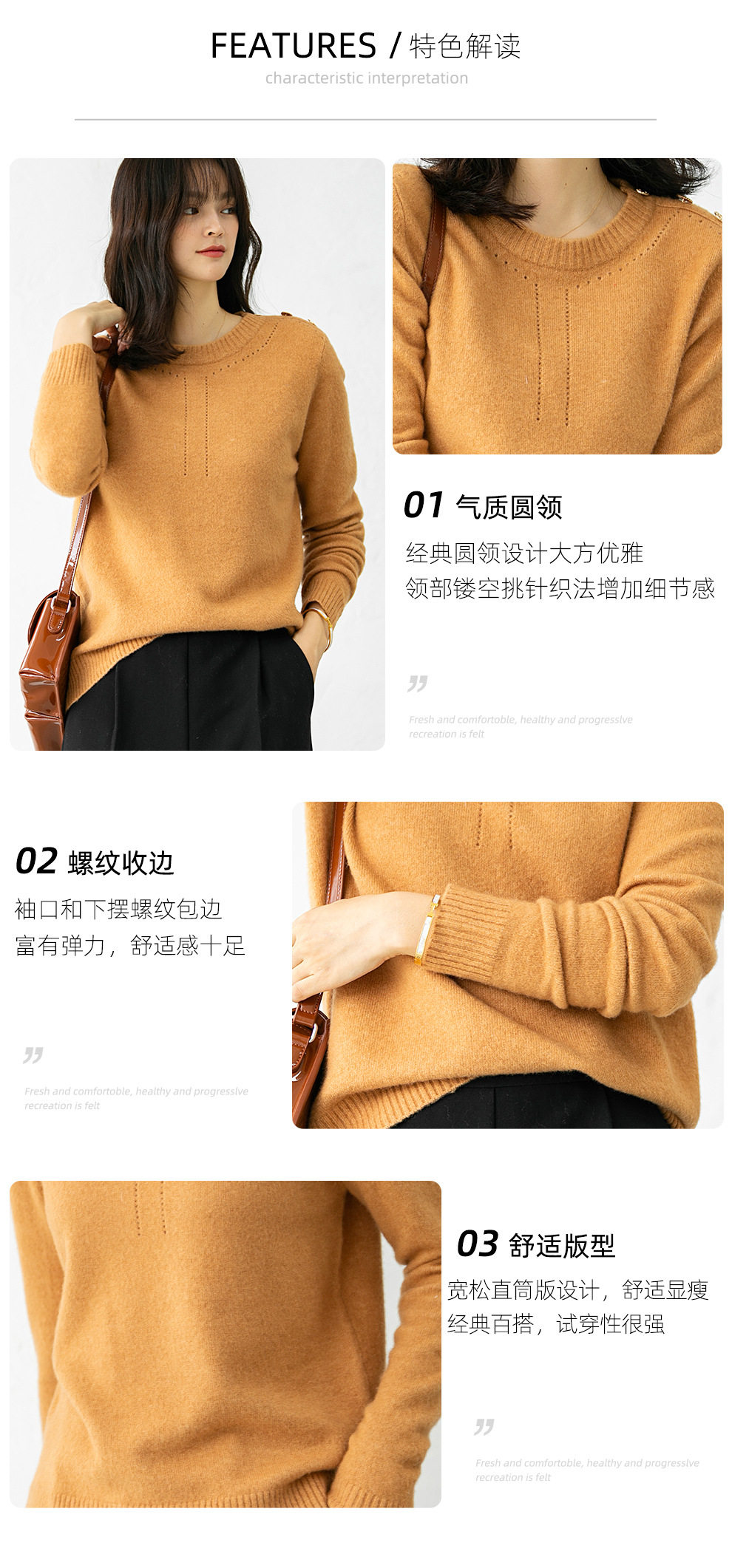 Демисезонный трикотажный шерстяной свитер с круглым воротником, свободный крой