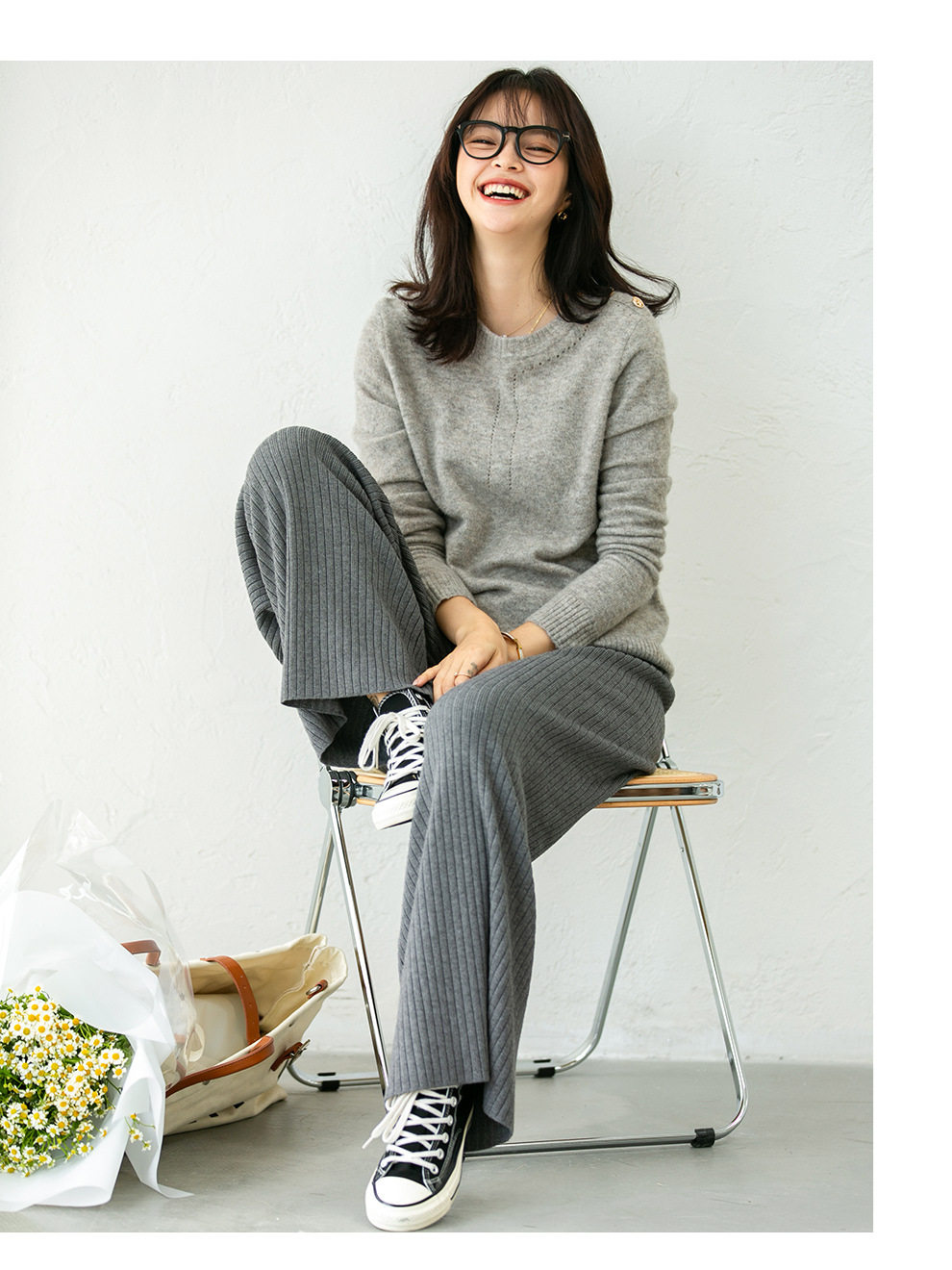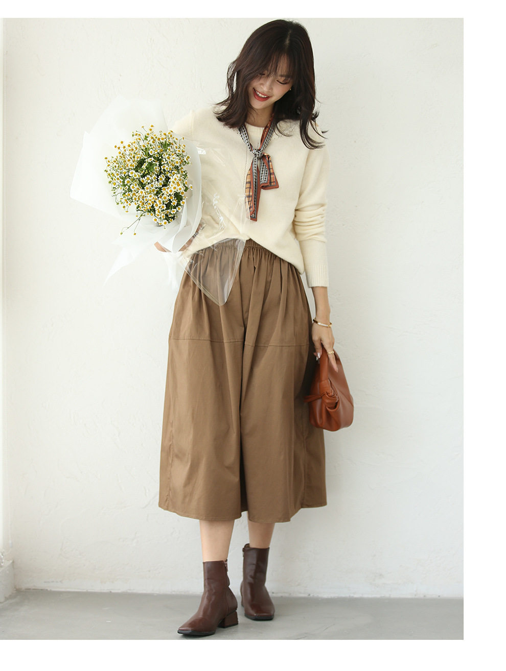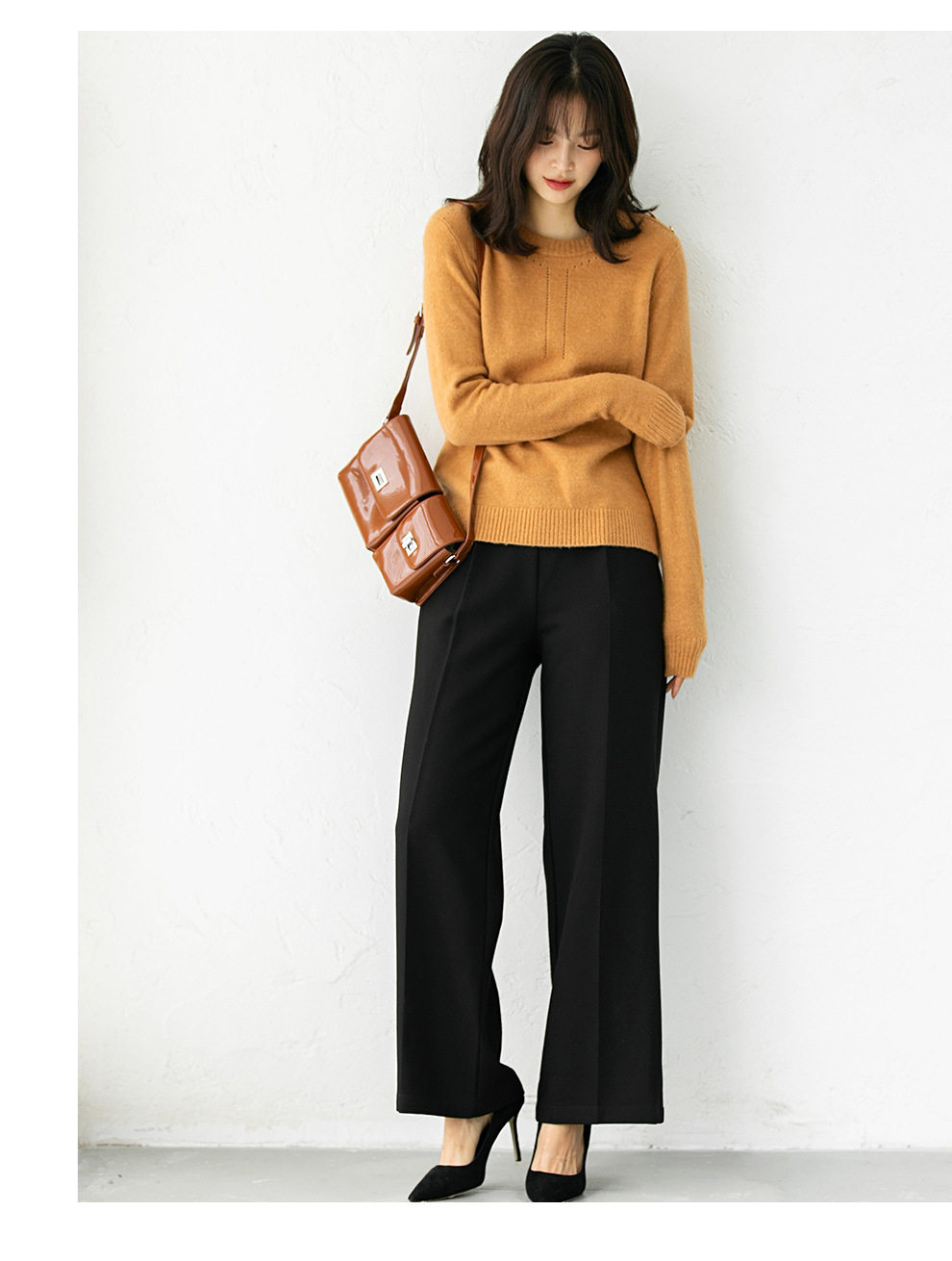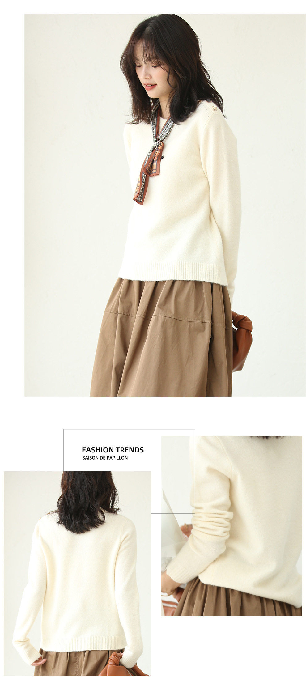 Демисезонный трикотажный шерстяной свитер с круглым воротником, свободный крой