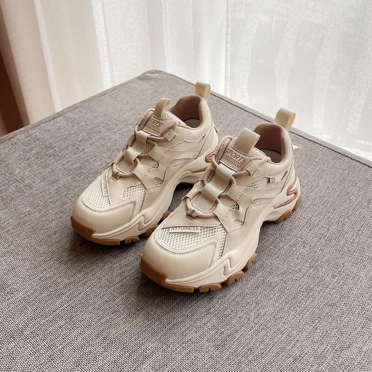 艾美其 丨Летние спортивные туфли для папы для женщин, толстая подошва, новый стиль 2022 года, небольшие повседневные туфли для женщин, универсальные.