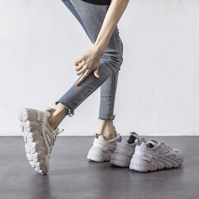 Интернет-знаменитости из натуральной кожи на толстой подошве с сеткой для женщин, лето 2023, новые повседневные туфли с сеткой, универсальная утягивающая дышащая спортивная обувь