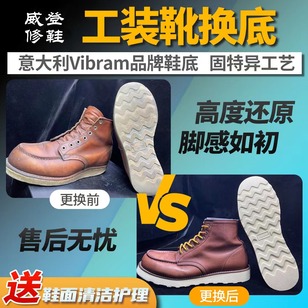 Обувь отремонтировано v Основание Redwing Red Wing 875 1907 Worker Worker Worker Boots и обувь для обуви подошвы сплошной сплошной замены.