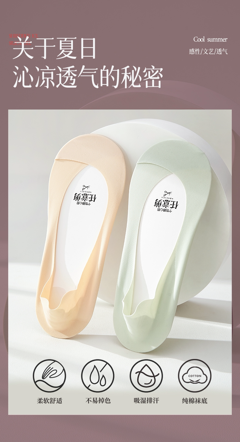 Шелковые колготки, летние тонкие нескользящие носки, хлопковые невидимые туфли на высоком каблуке с низким вырезом