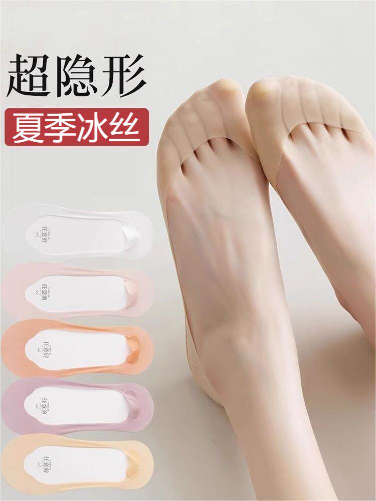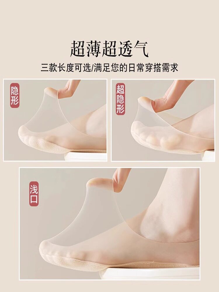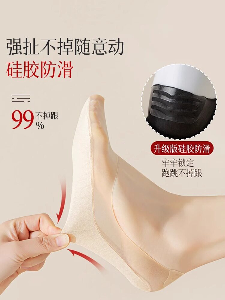 Нескользящие летние невидимые туфли на высоком каблуке с низким вырезом, хлопковые шелковые колготки