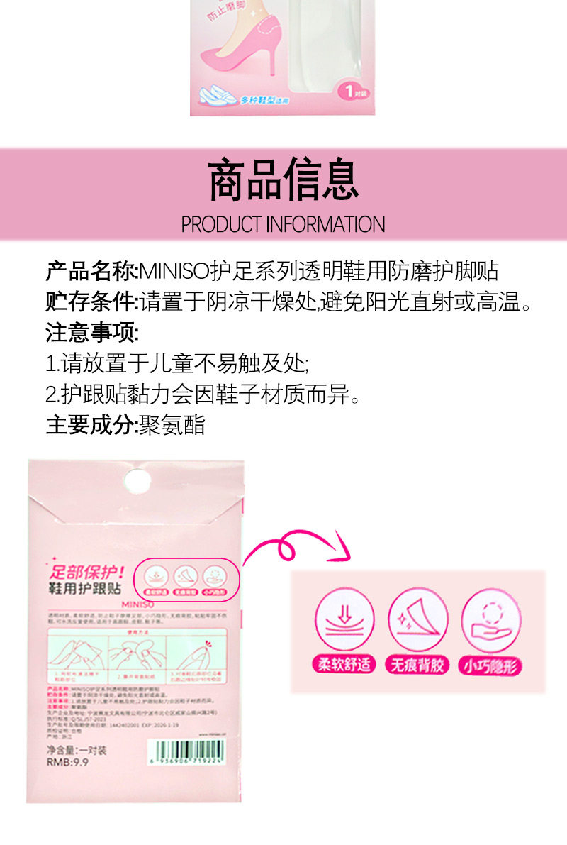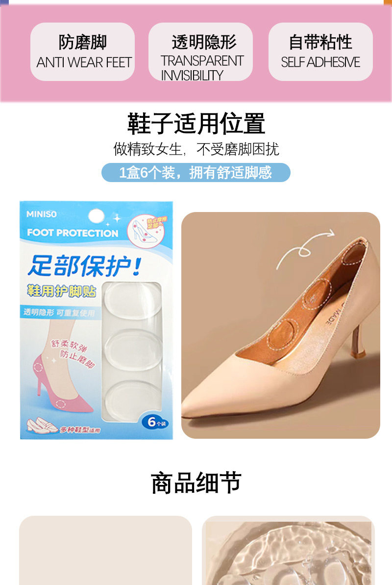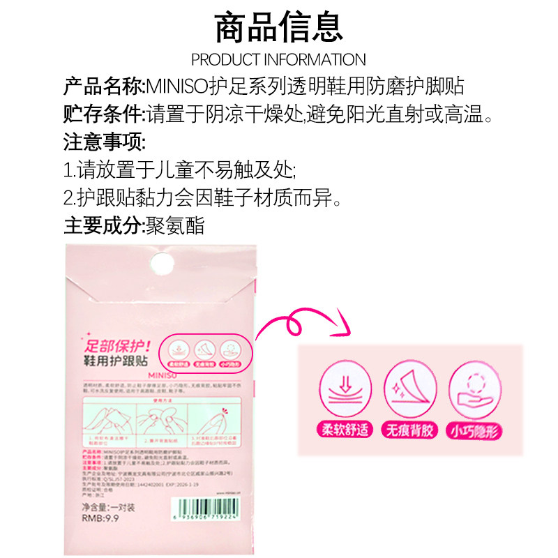 Miniso, прозрачные мягкие комфортные невидимые наклейки на ноги