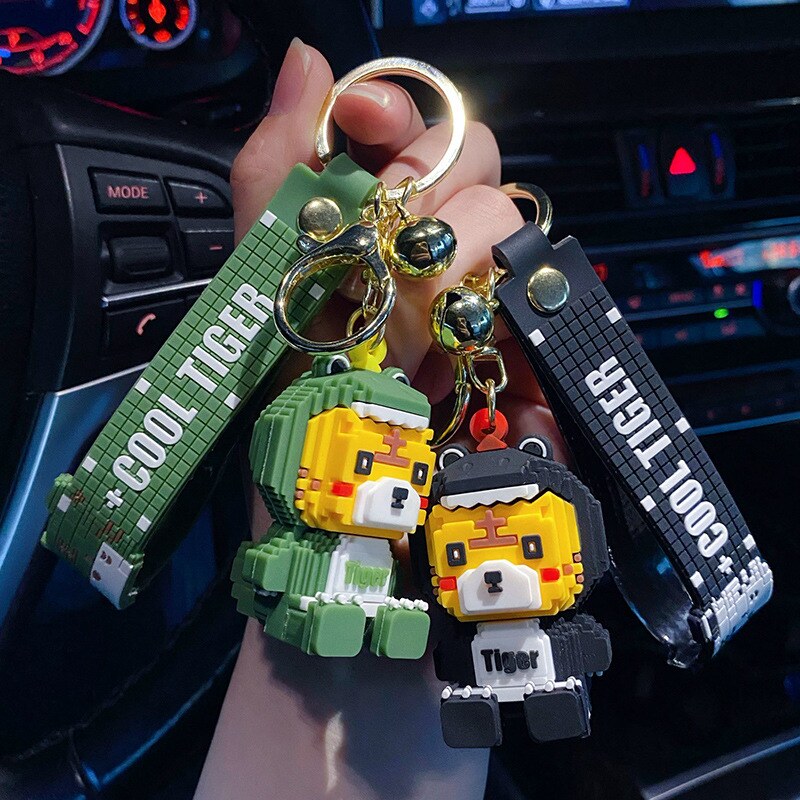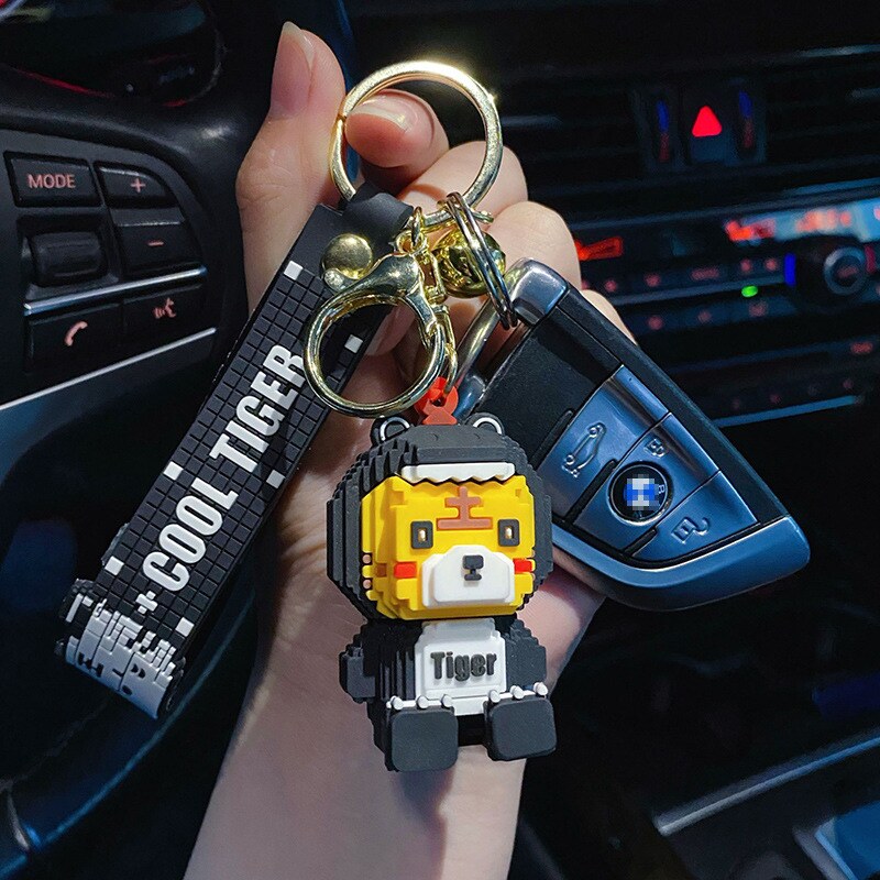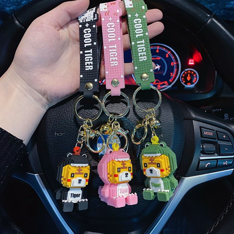 Брелок, креативный мультяшный конструктор, динозавр, ключи от машины, милая цепочка, украшение на сумку, для влюбленных, тигр